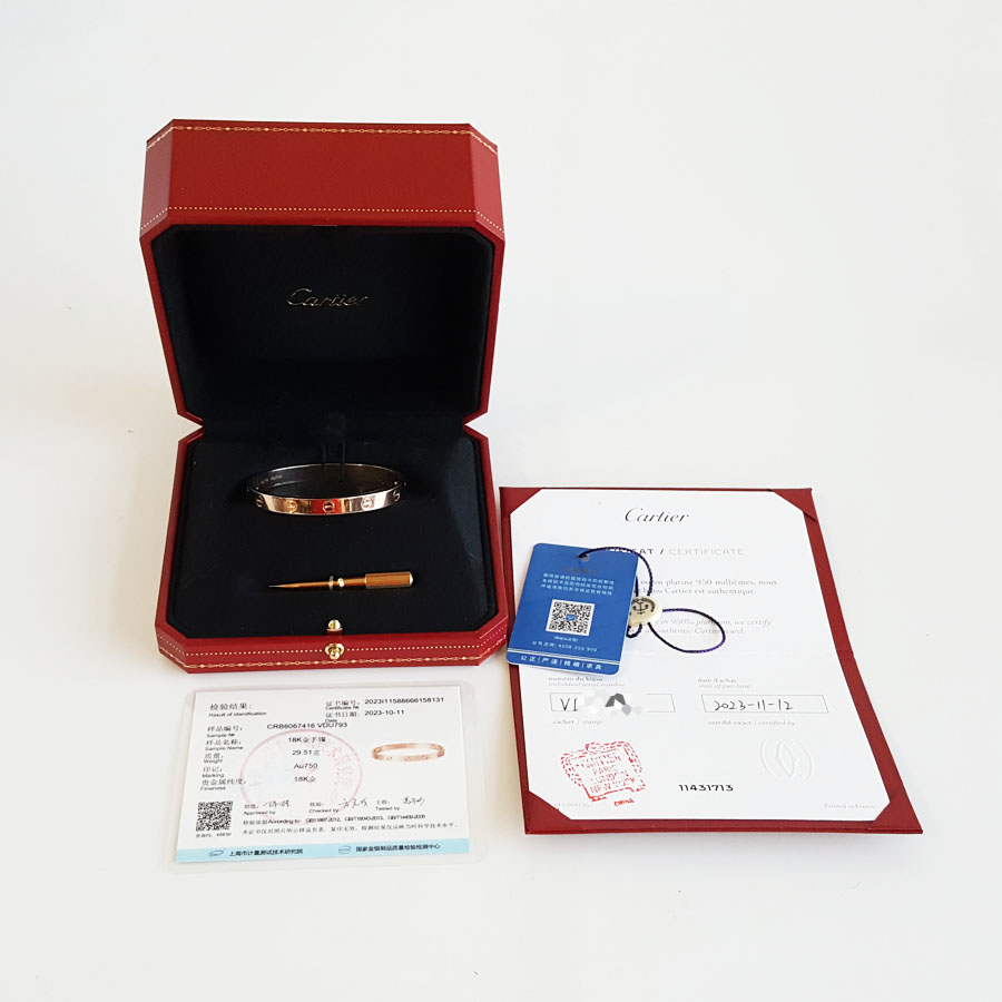 【98新】Cartier卡地亚LOVE系列B606741618K玫瑰金宽版无钻LOVE五代手镯16号、宽度6mm中性款251125AK02