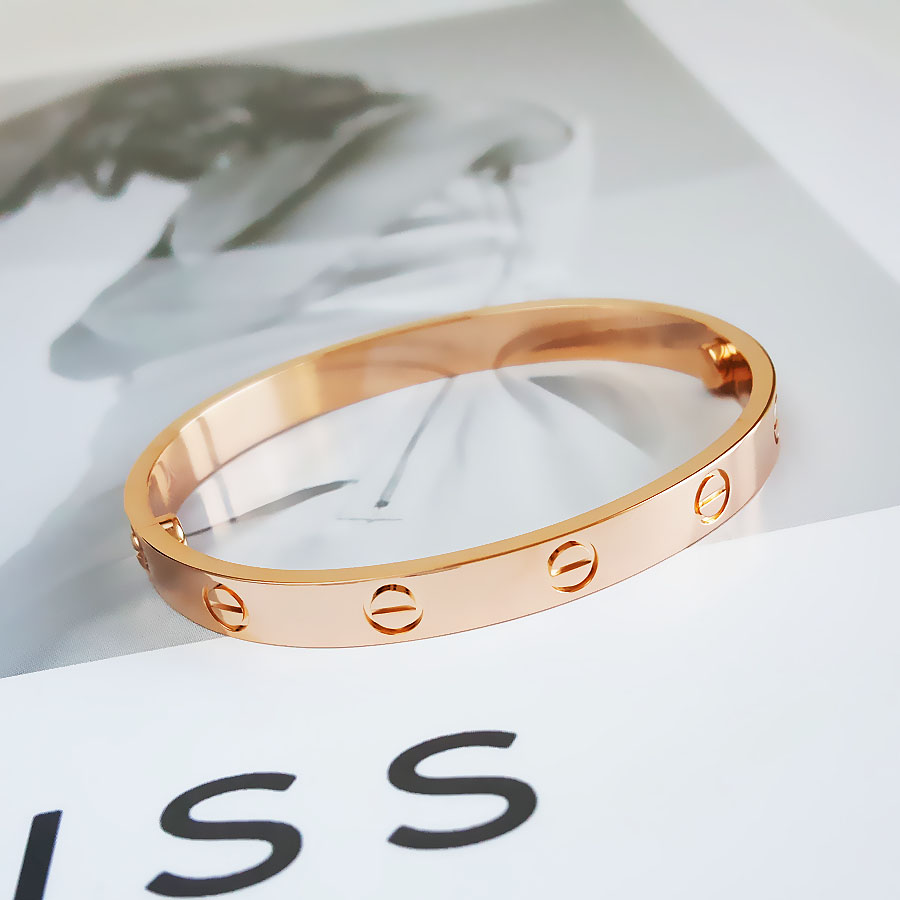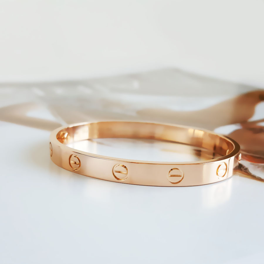 款式 | 18K玫瑰金宽版无钻LOVE五代手镯 |