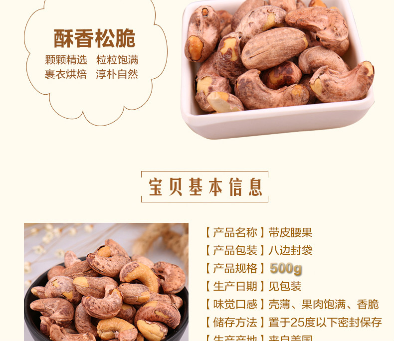 新疆带皮碳烤熟腰果仁/大果 AWJM
