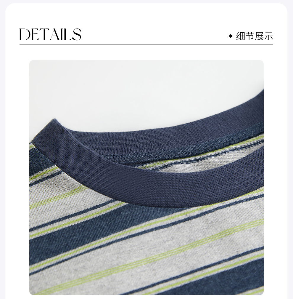 ROMI STUDIO“随性自我”宽松撞色条纹休闲棉涤短袖T恤RWCAS65324