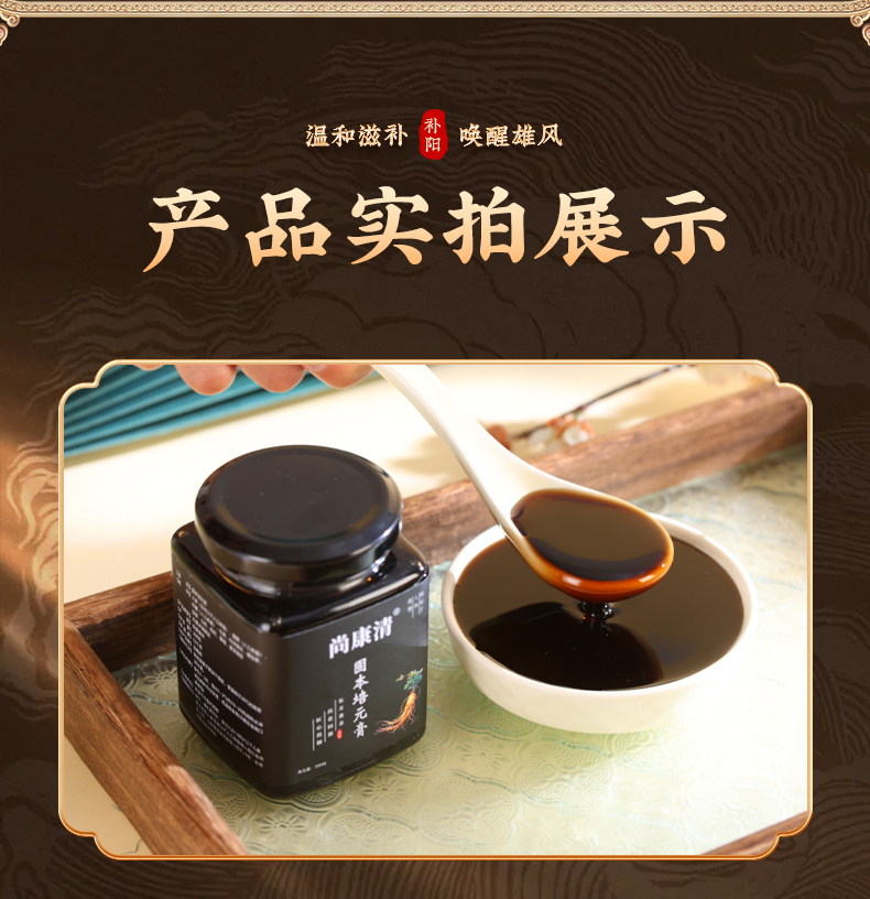 尚康清固元膏中的鹿鞭、牛鞭是传统的壮阳食材,能够增强肾阳,杜仲雄花也有补肾益精的功效。尚康清固元膏能改善肾虚引起的各种症状,如阳痿早泄、腰膝酸软、性功能减退等,长期服用可以提高性功能。