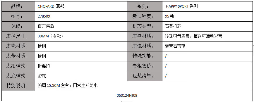 【95新正品】CHOPARD 萧邦HAPPY SPORT系列278509石英机芯30MM(女款)060124NJ09