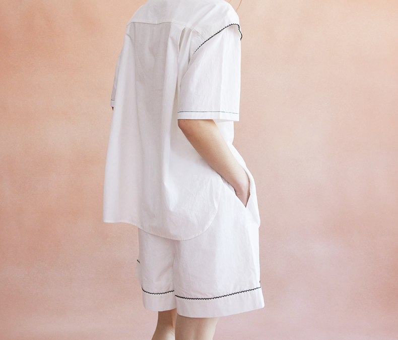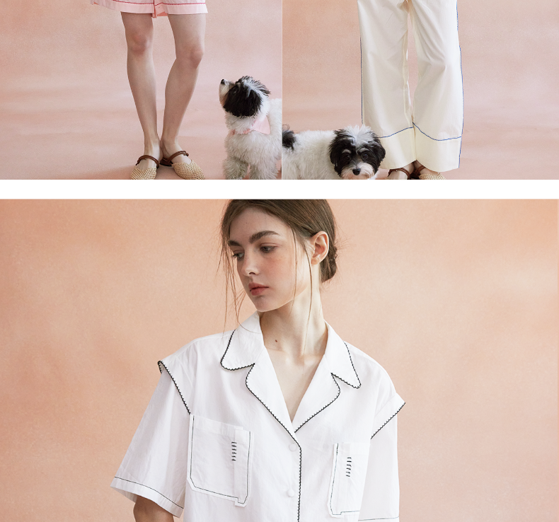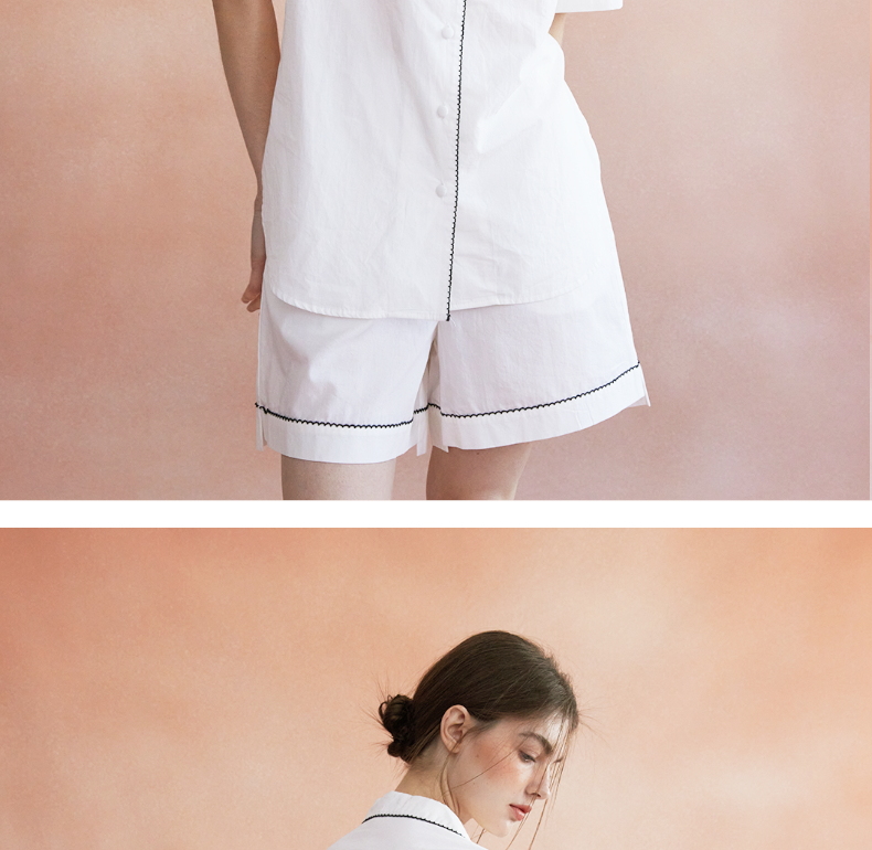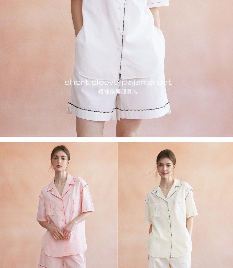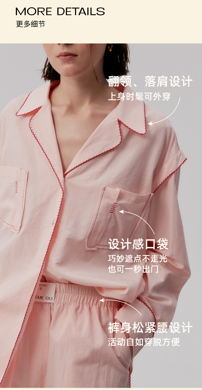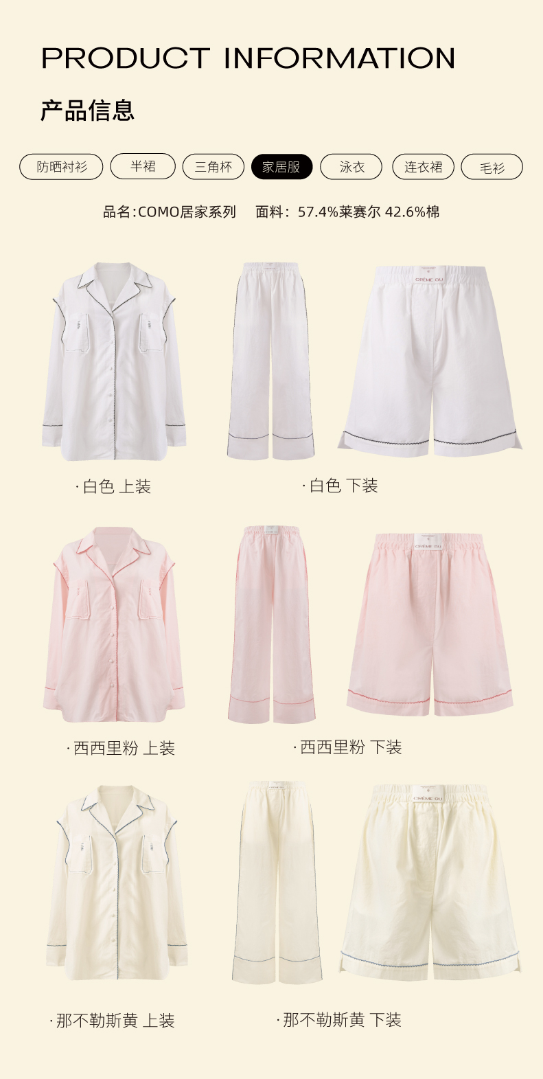 【玫瑰的故事同款】CremeSu家居服女Como系列宽松舒适撞边家居服长袖衬衫长裤短裤女
