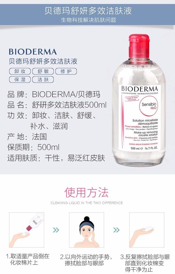 贝德玛舒妍洁肤液500ml粉色