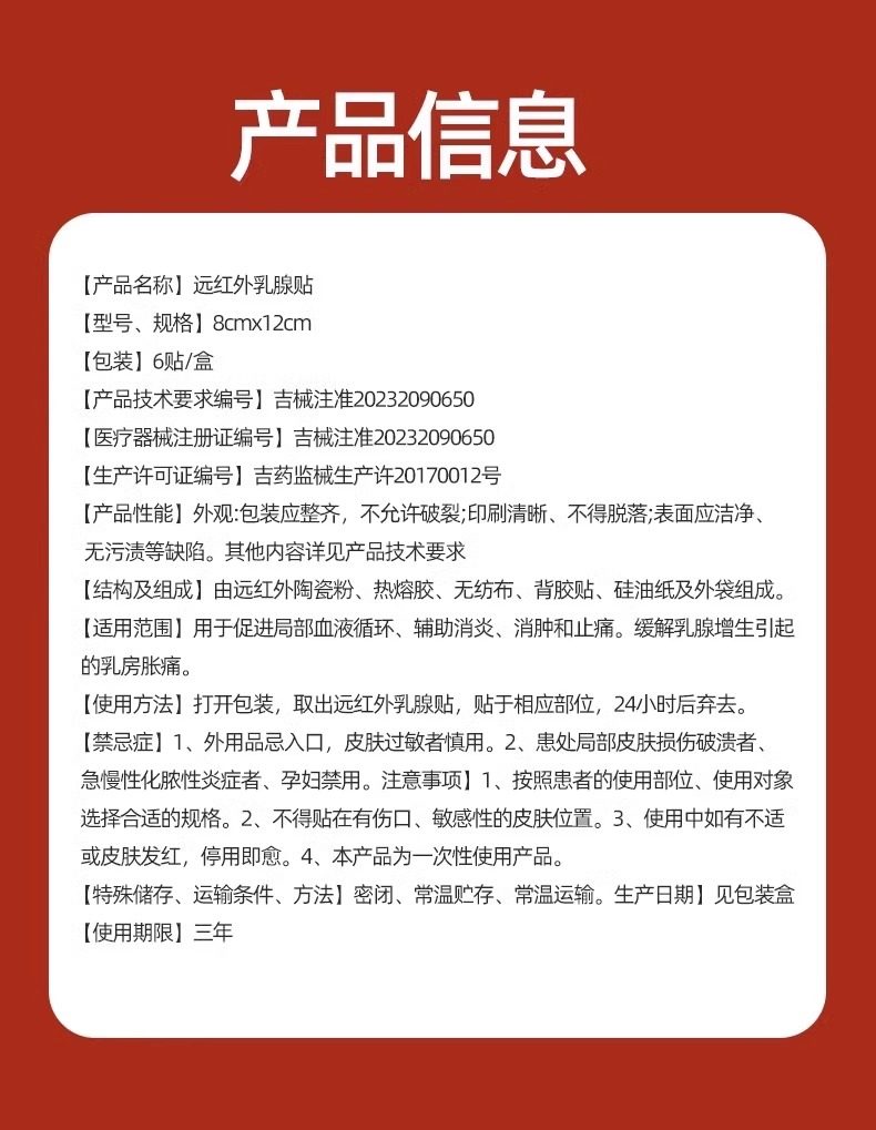 敖东远红外乳腺贴辅助缓解乳腺硬块增乳房胀痛消肿贴官方正品