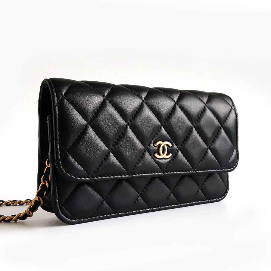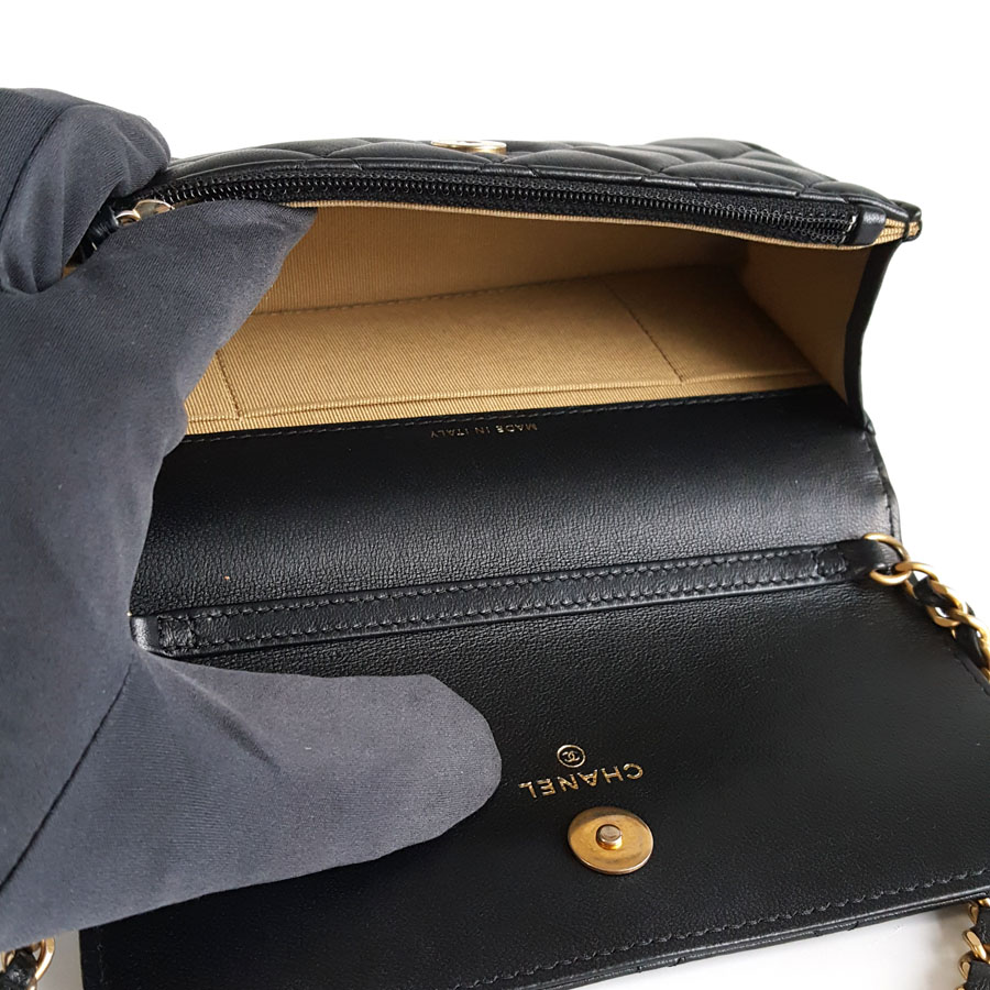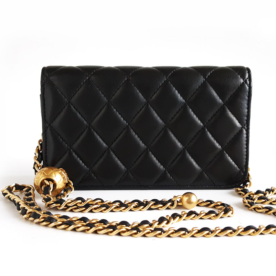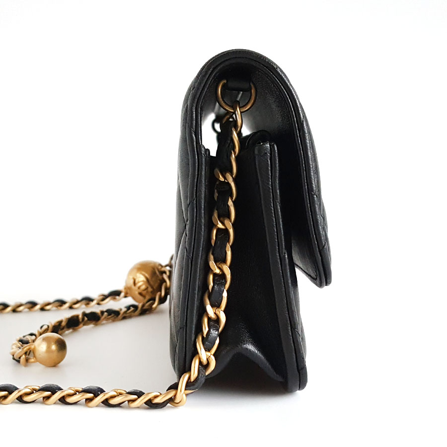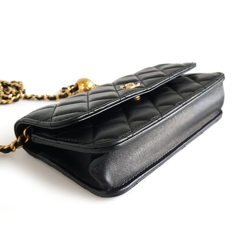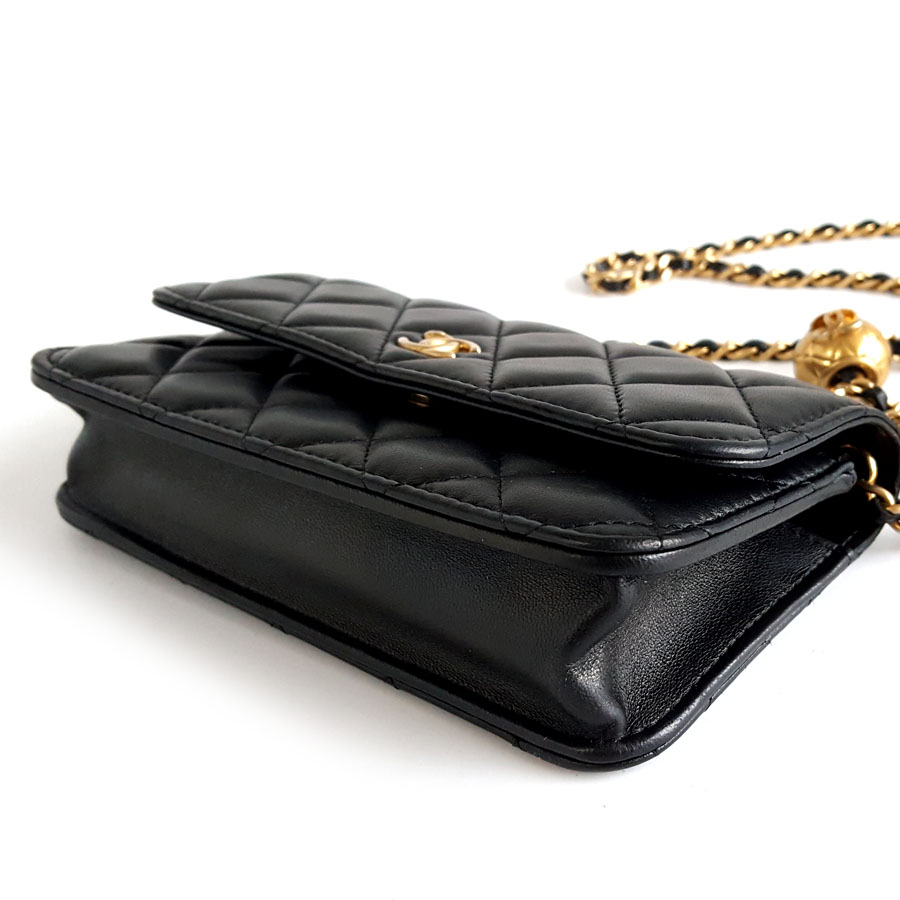 【95新】CHANEL香奈儿AP3071 B02916 9430523C 女士 黑金羊皮金球woc手机包链条包单肩包071025NJS07