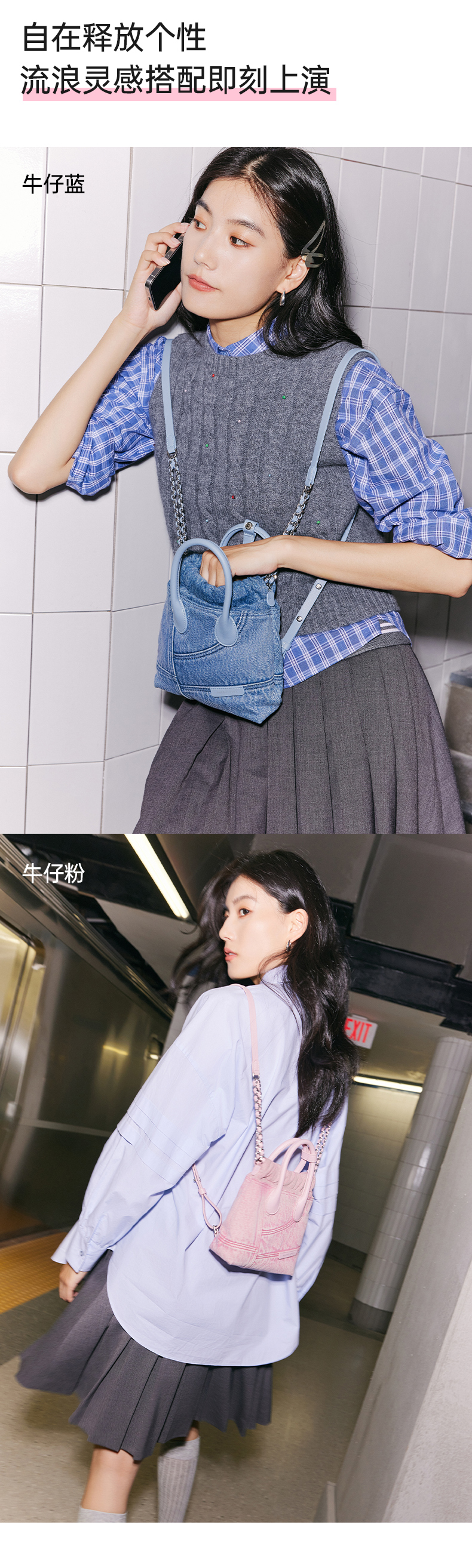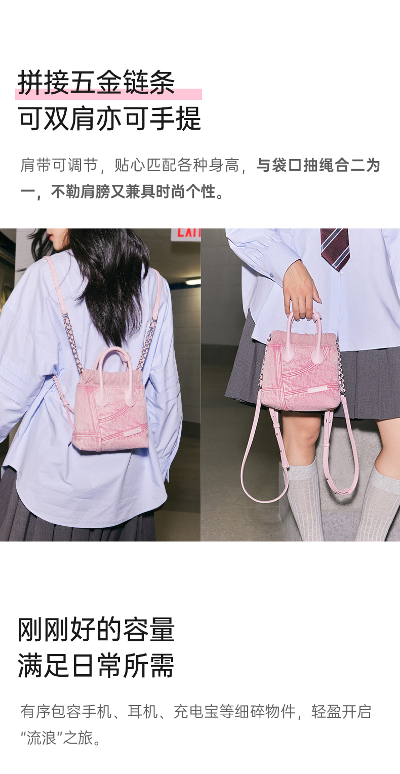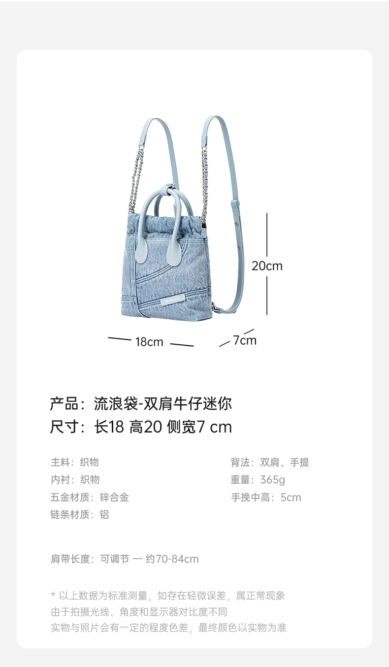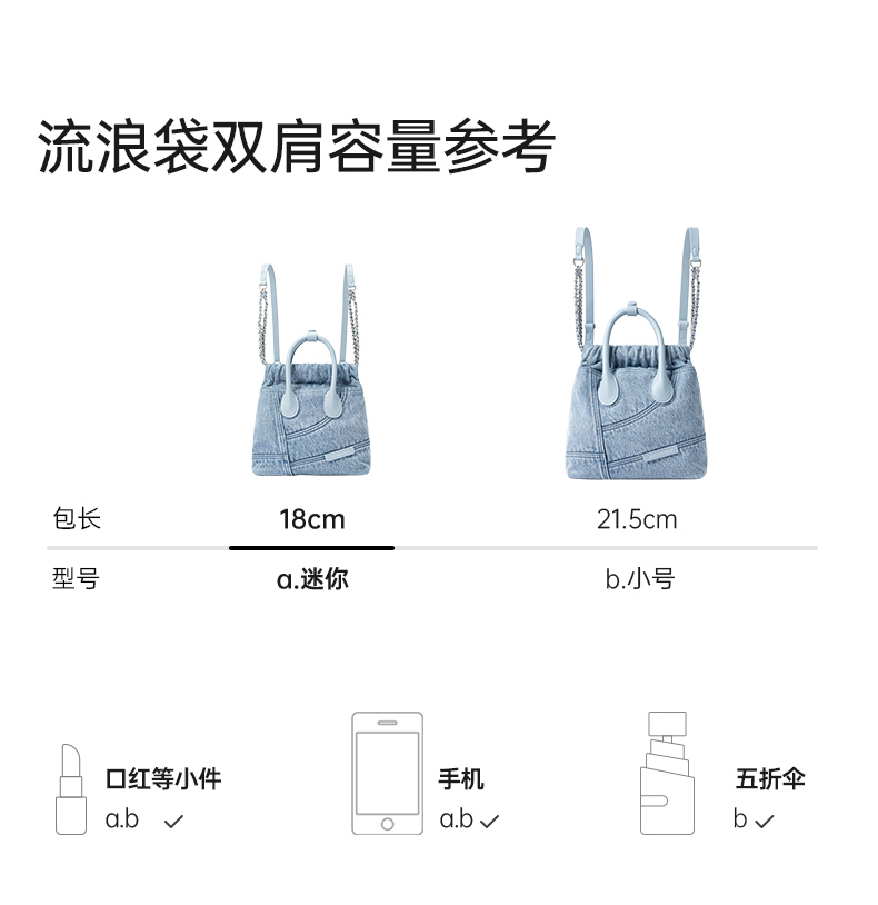 Amazing Song乙颂 流浪袋双肩牛仔迷你新款小众手提包包女款