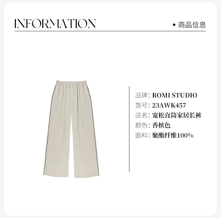 ROMI STUDIO“quiet luxury”慵懒宽松直筒香槟色家居长裤 23AWK457