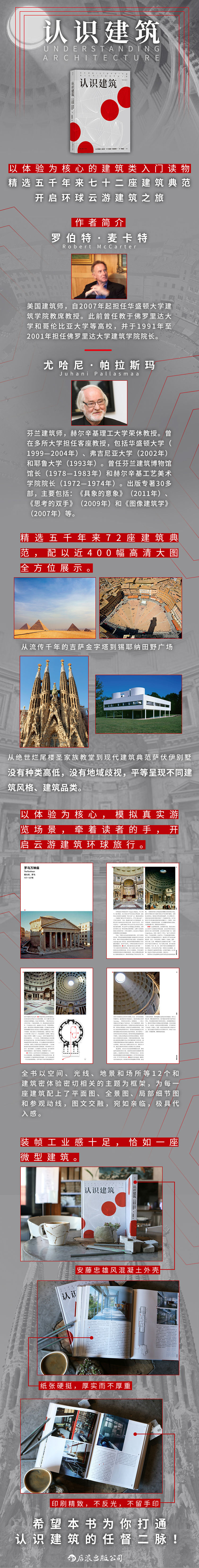 本书是一本为大众读者撰写的建筑入门读物,目的在于为他们提供一种理解和体验建筑的全新的途径。全书根据关键的建筑主题划分为12章,精心挑选包括埃及金字塔和悉尼歌剧院在内的72座代表性建筑,引领读者展开一场仿佛亲身参与的“田野调查”。每章有一篇简短的引言介绍相关概念和背景知识,然后用6个建筑实例详解该主题,搭配精美的建筑照片和带有观赏路线的平面图,为读者带来愉悦的阅读体验和身临其境的在场感。