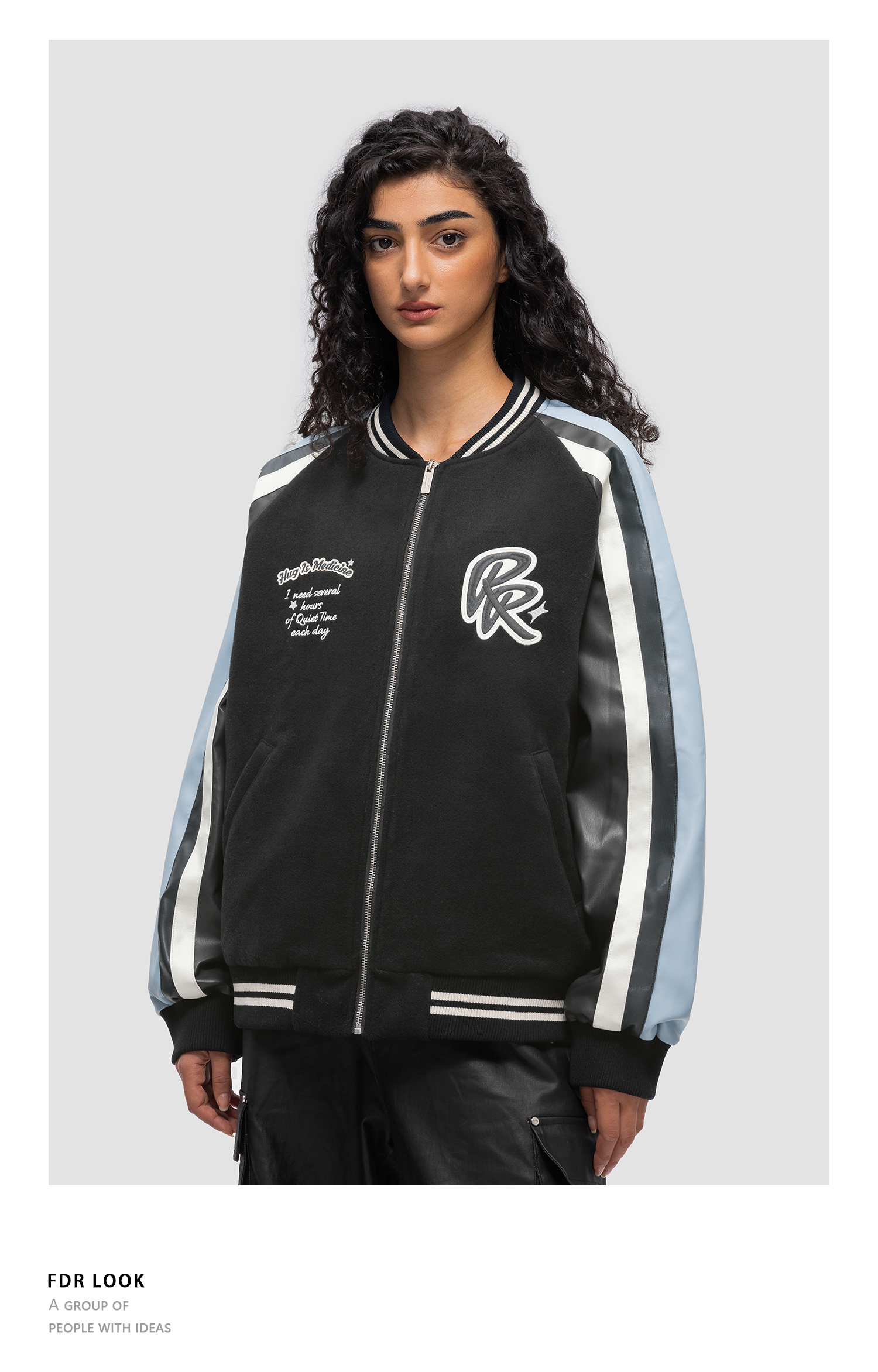 FDR 国潮高街异料拼色棒球服外套男女秋冬季美式情侣宽松上衣夹克