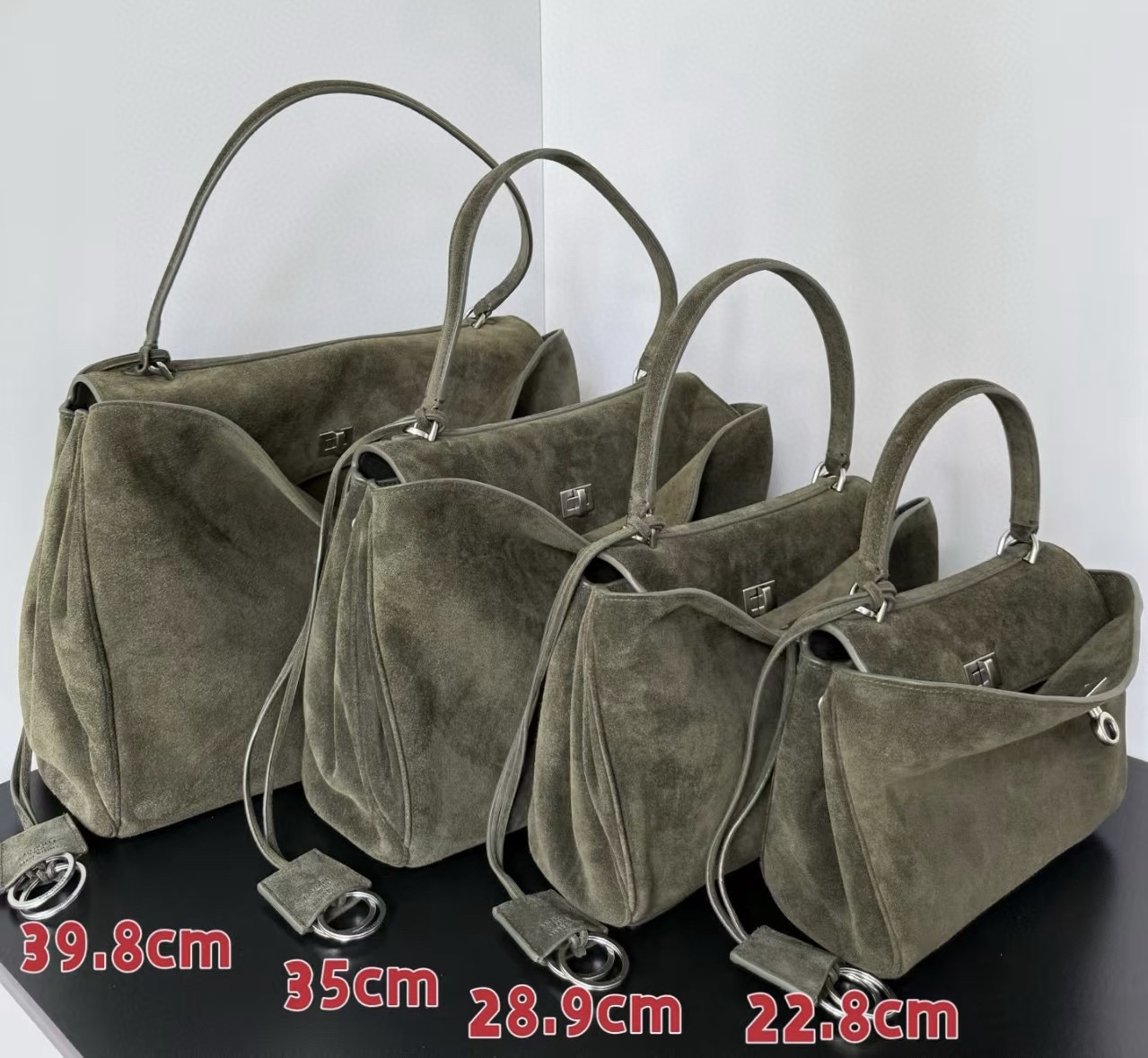 巴黎世家大爆款 rodeo 麂皮系列 三个色 深棕色 浅棕色 深绿色!三个色 四个尺寸对比参考 大/中/小/迷你.