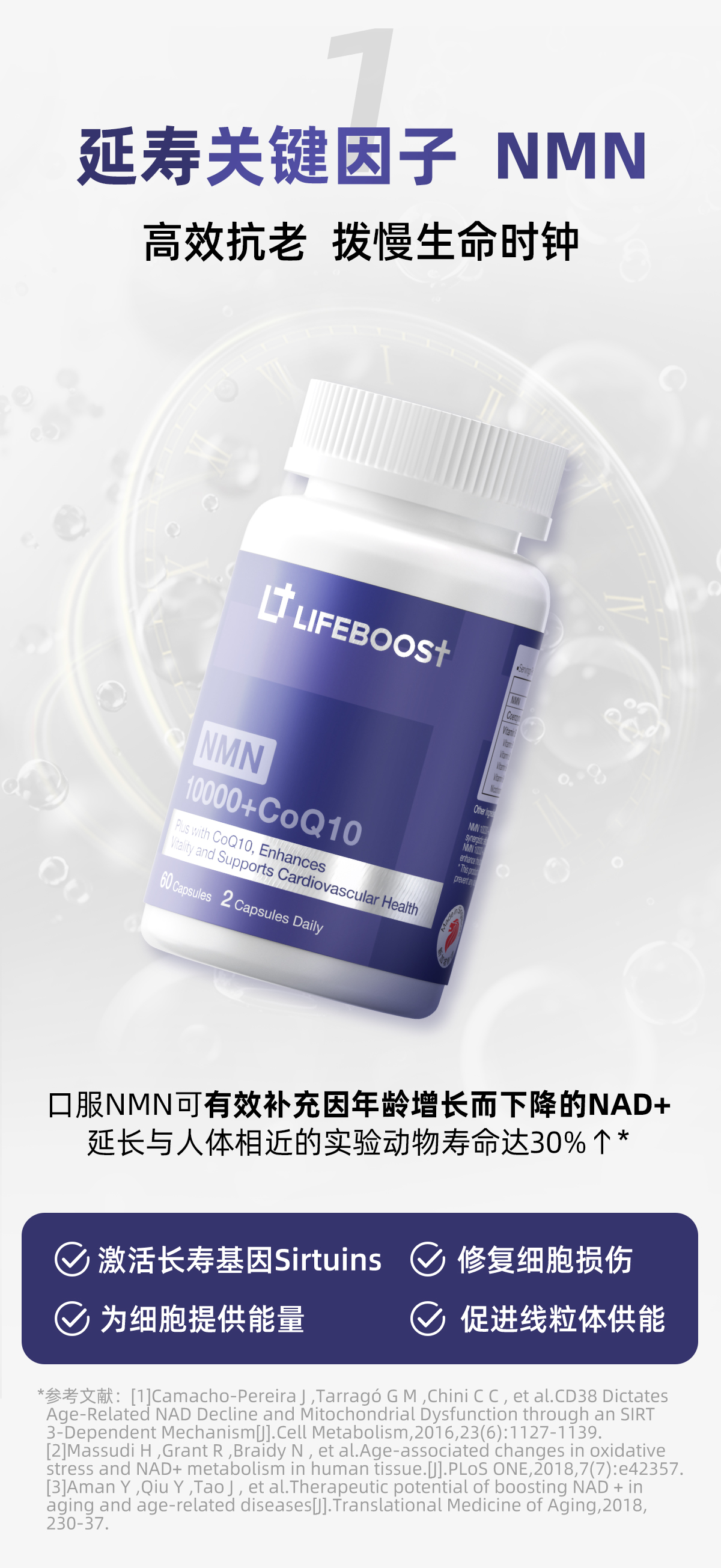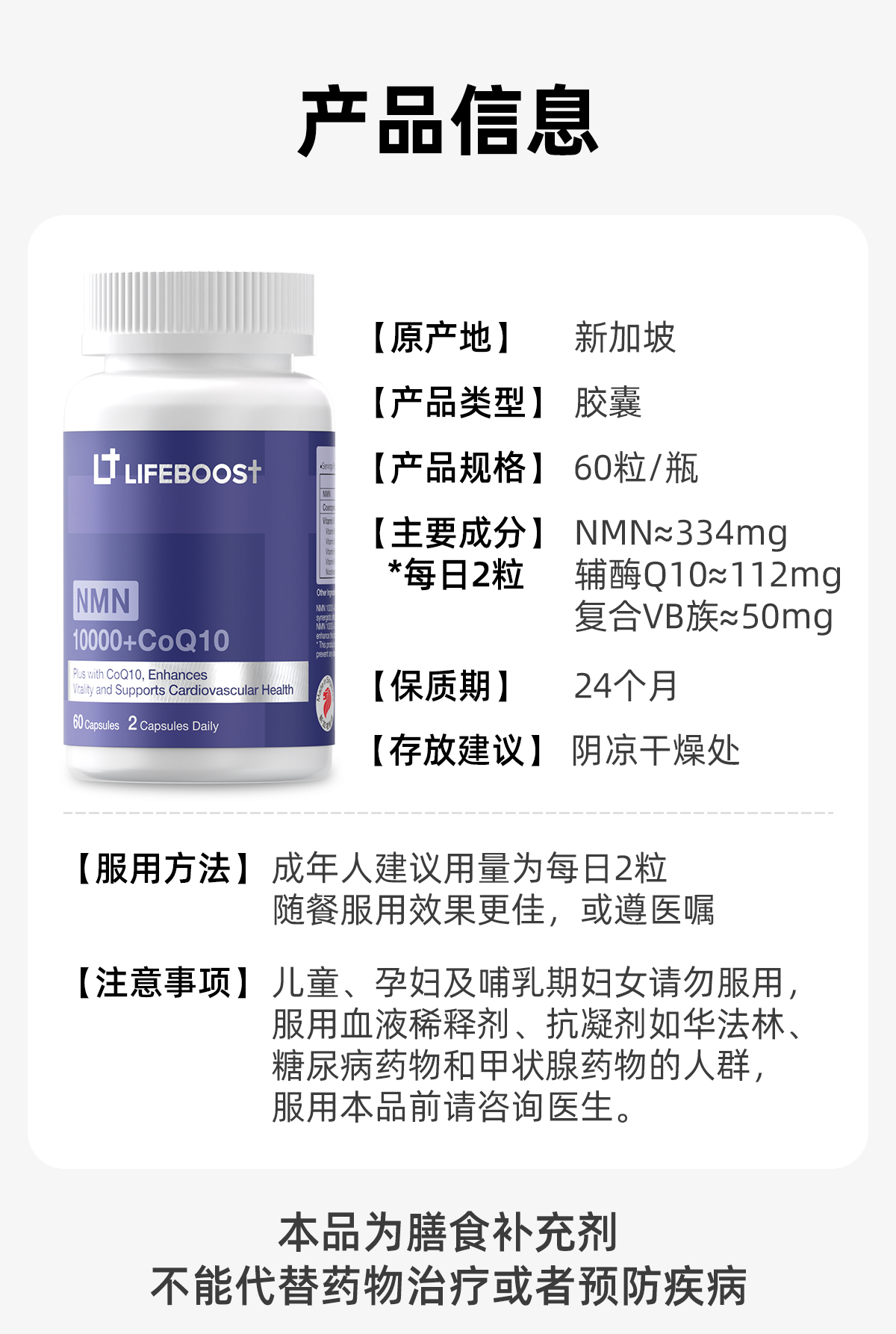 【新加坡直邮 效期27年5月】NMN10000+CoQ10胶囊 抗衰+心脏健康