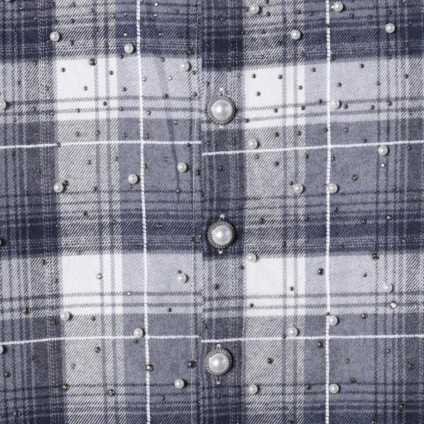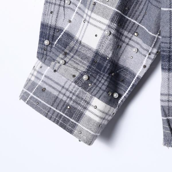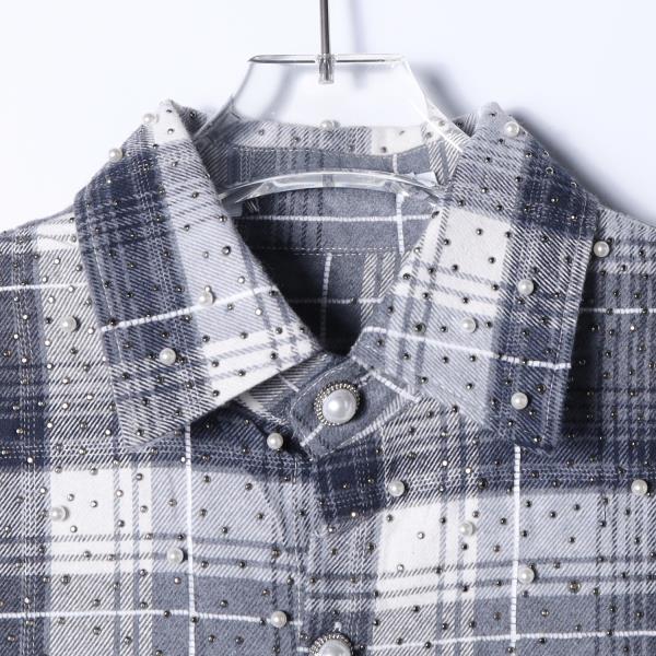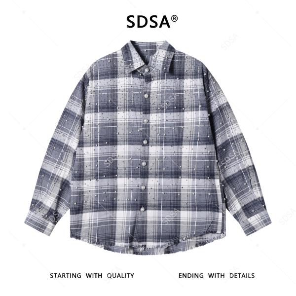 SDSA秋冬新款痞帅男装撞色烫钻珠子长袖衬衫百搭宽松格纹时尚上衣