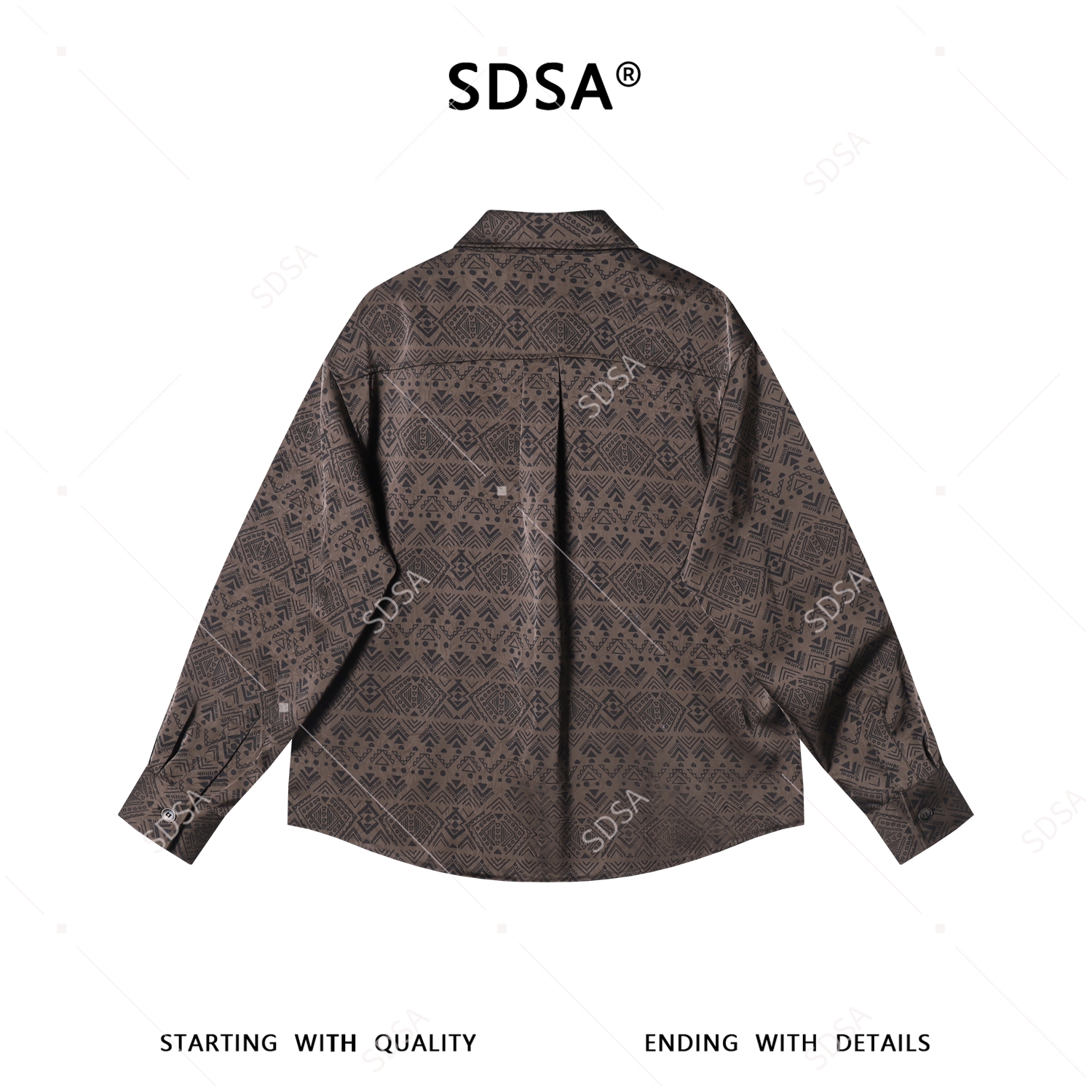 SDSA男装2026新款高贵轻奢美式复古几何图案长袖衬衫百搭时尚衬衣