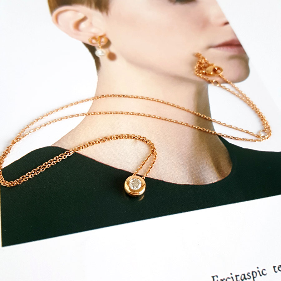 款式 | AU750玫瑰金时尚经典款0.205克拉钻石吊坠项链 |