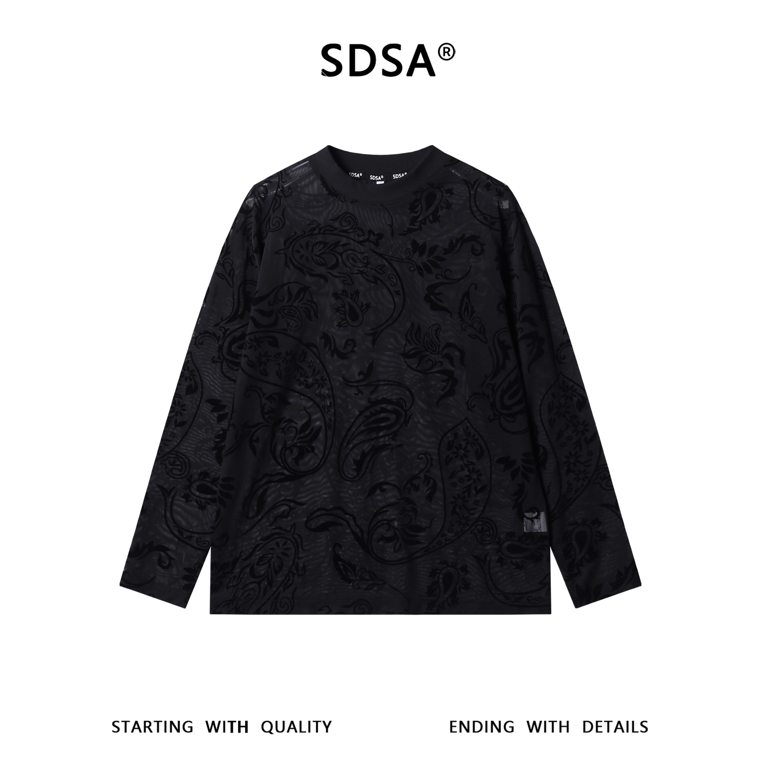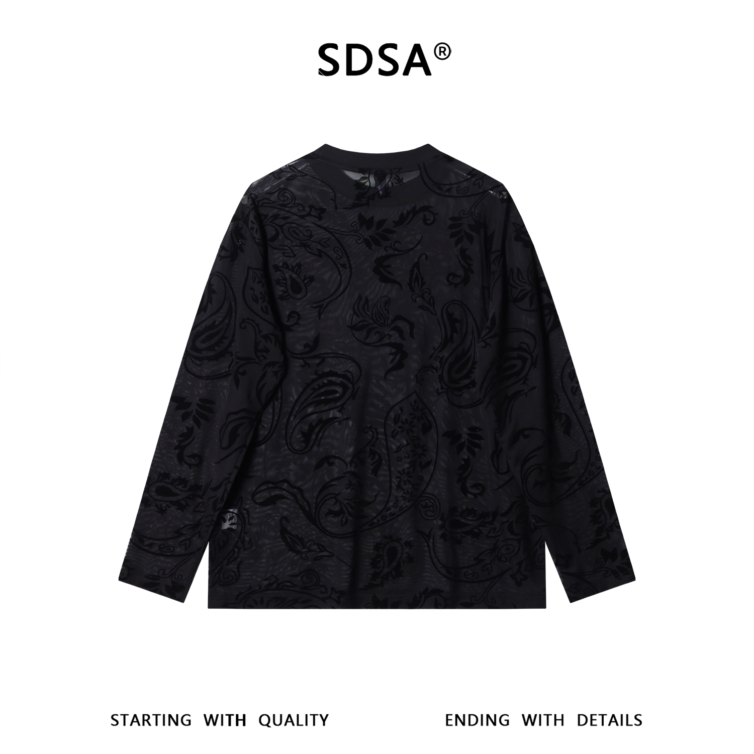 SDSA男装2026新款高贵轻奢时尚个性植绒腰果花卉圆领长袖T恤百搭