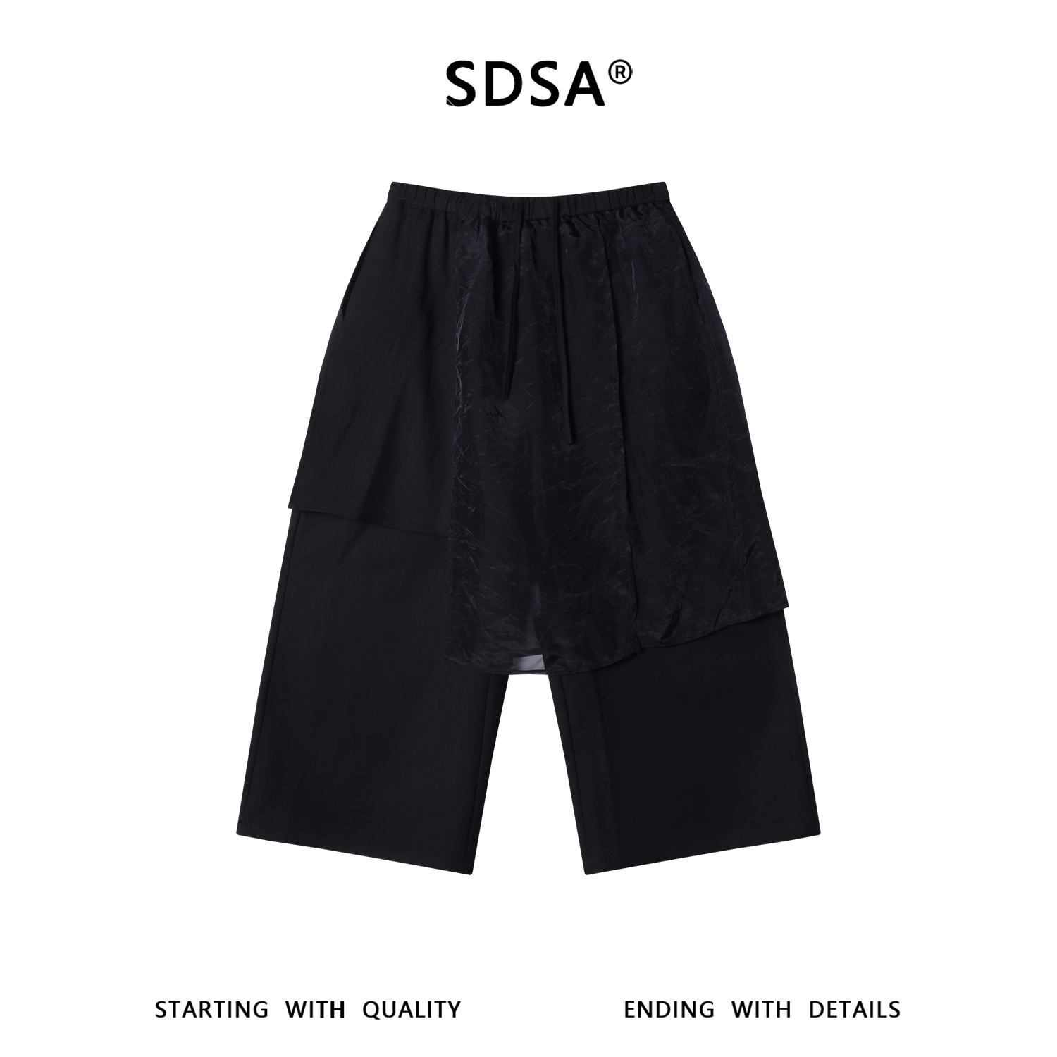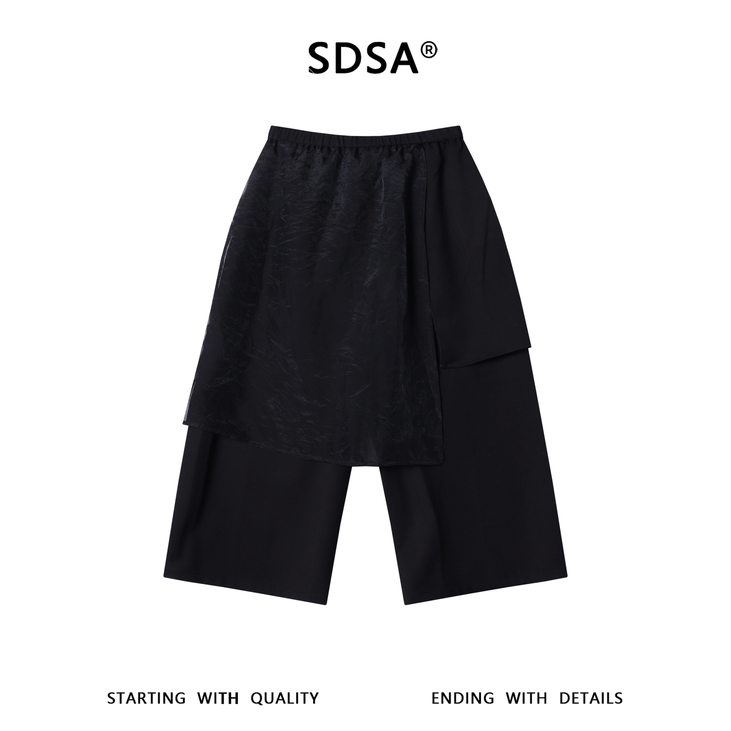 SDSA男装2026新款高贵轻奢假两件叠层阔腿七分裙裤新中式休闲裤