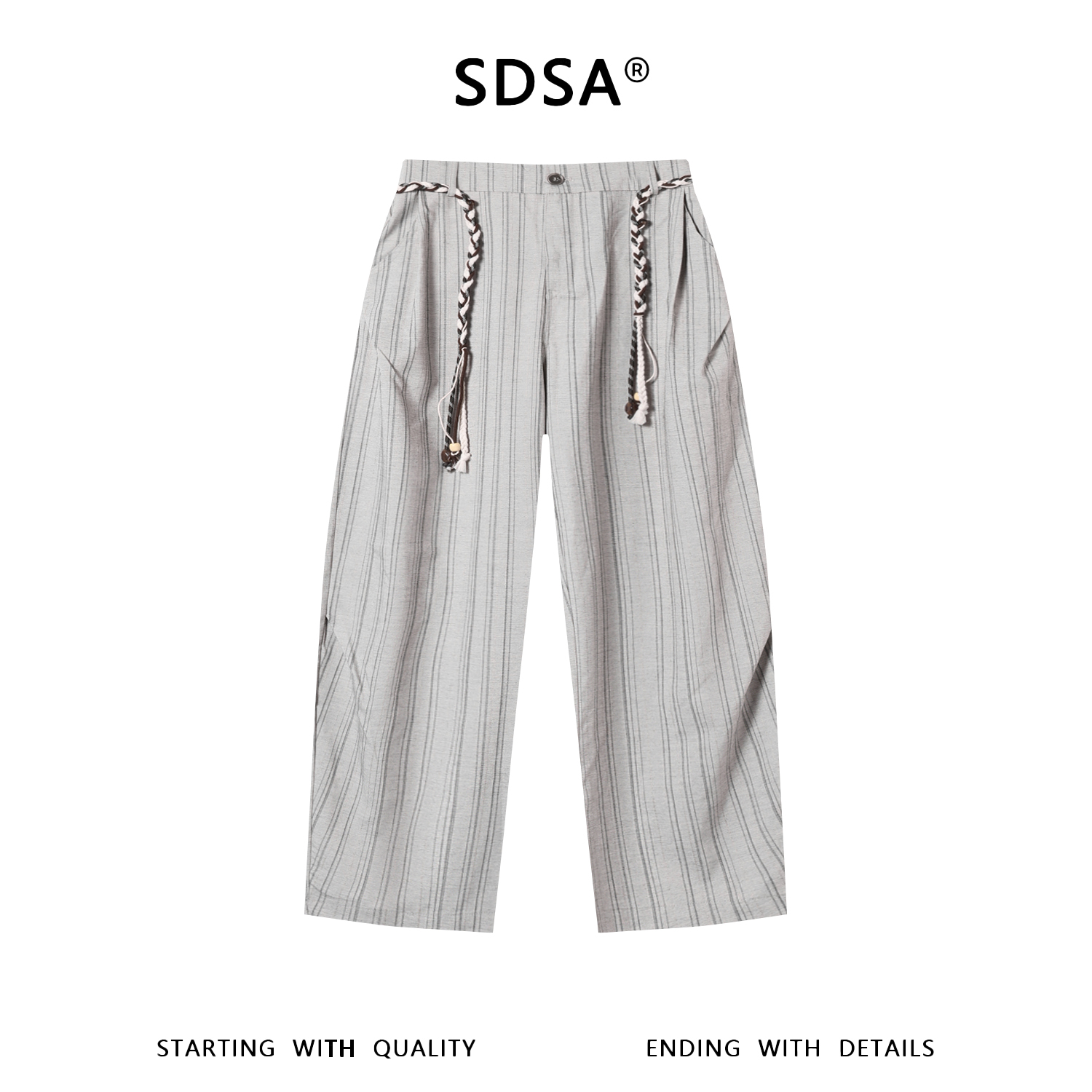 SDSA男装2026新款高贵轻奢潮牌竖纹编织抽绳休闲裤新中式垂感长裤