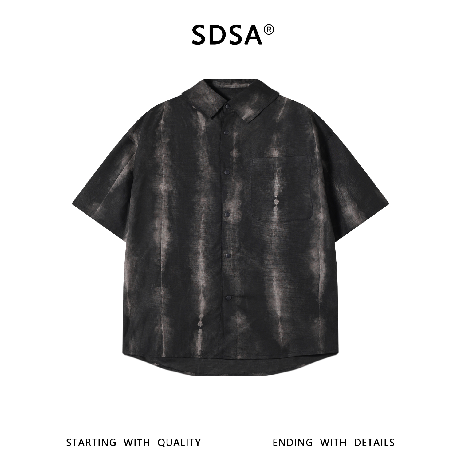SDSA男装2026新款高贵轻奢美式复古扎染渐变印花短袖衬衫百搭时尚