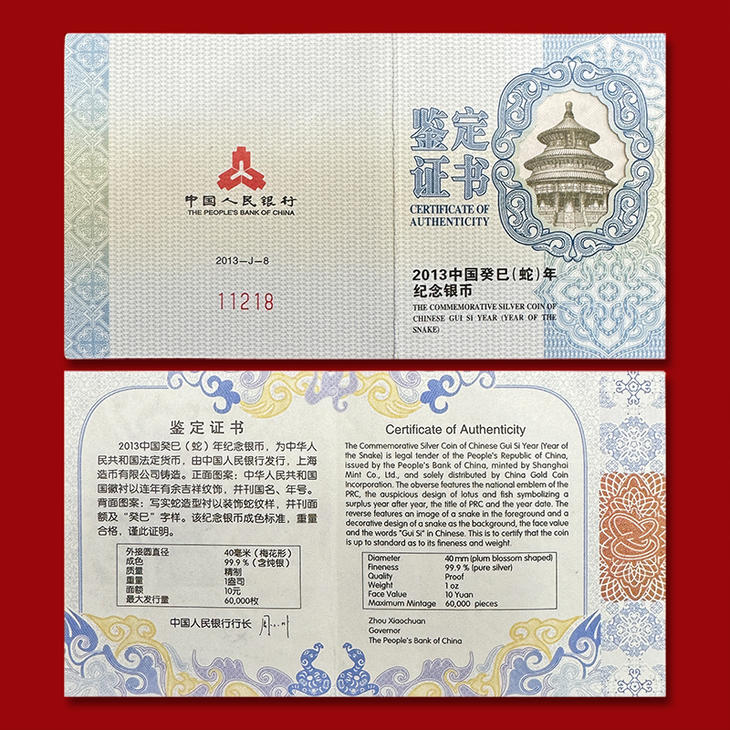 2013年蛇年梅花形银币 纯银1盎司 原盒原证