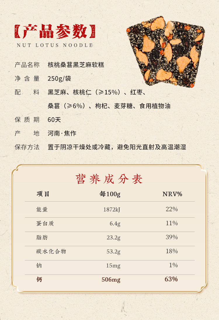 甄磨坊 核桃桑葚黑芝麻糕 软糯微甜