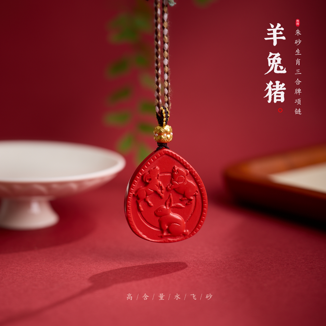 【普陀山】朱砂三合生肖挂件-普陀山发货