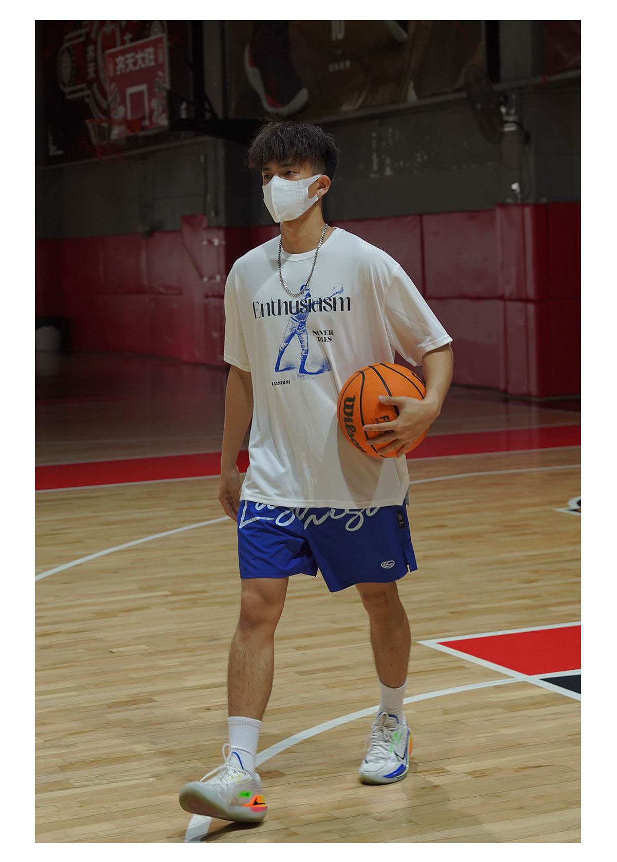 LUSHISI光明主题印花美式篮球不过膝四五分裤运动跑步训练短裤男