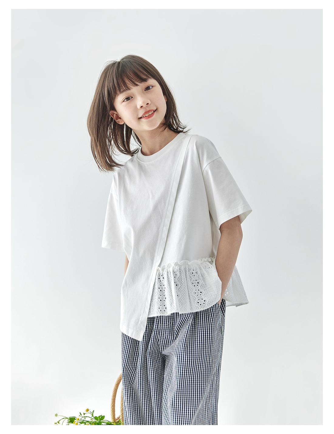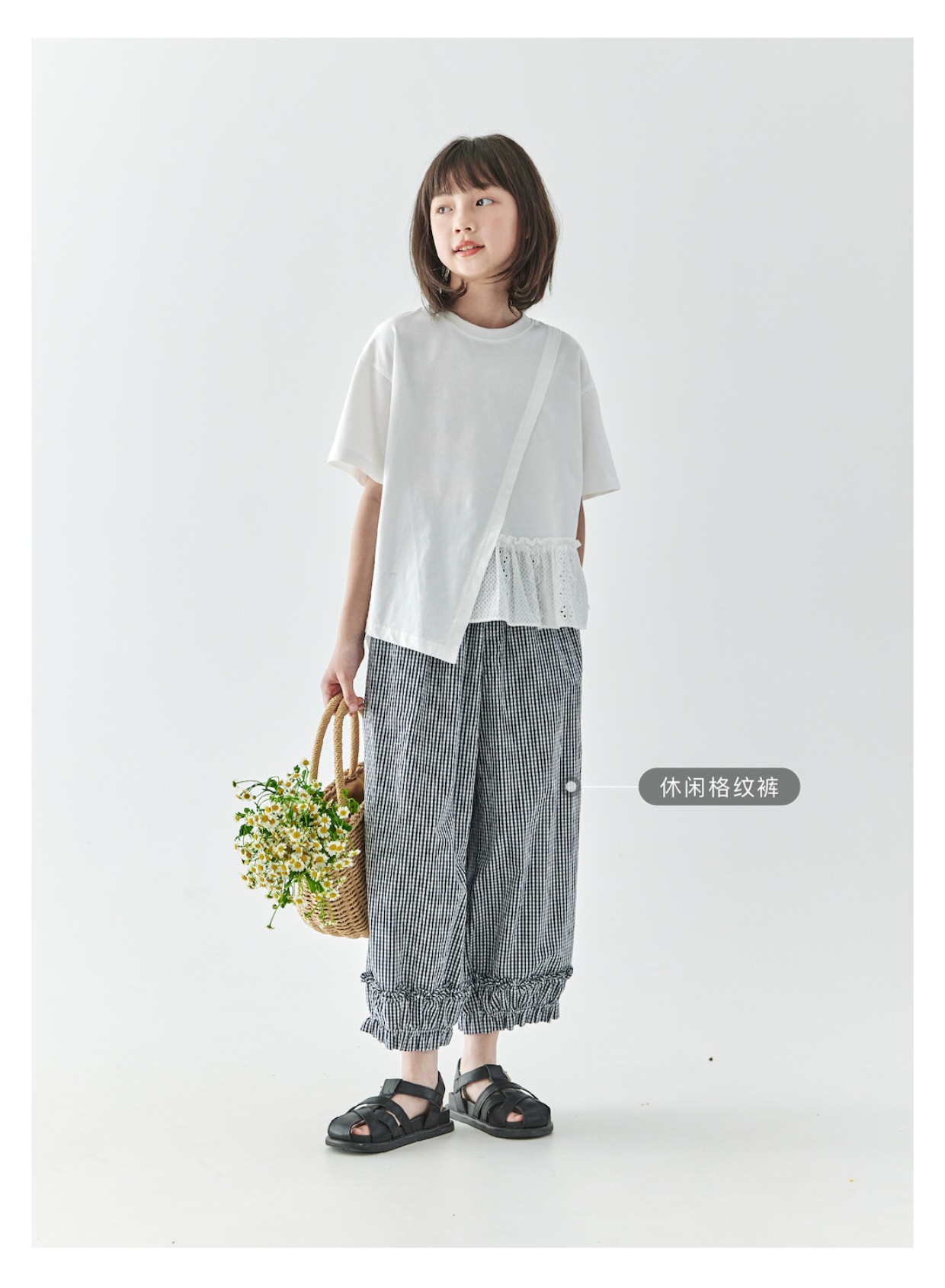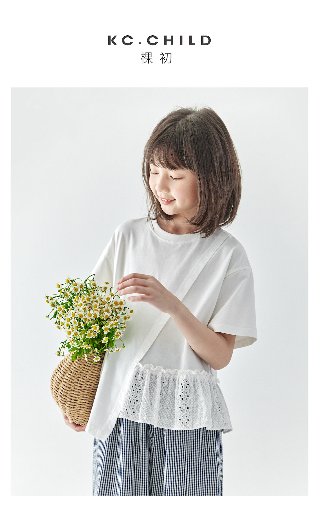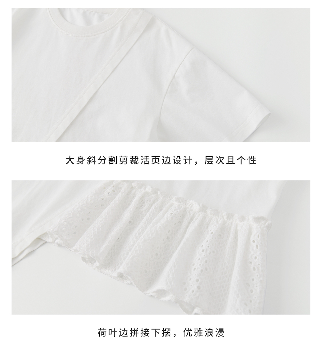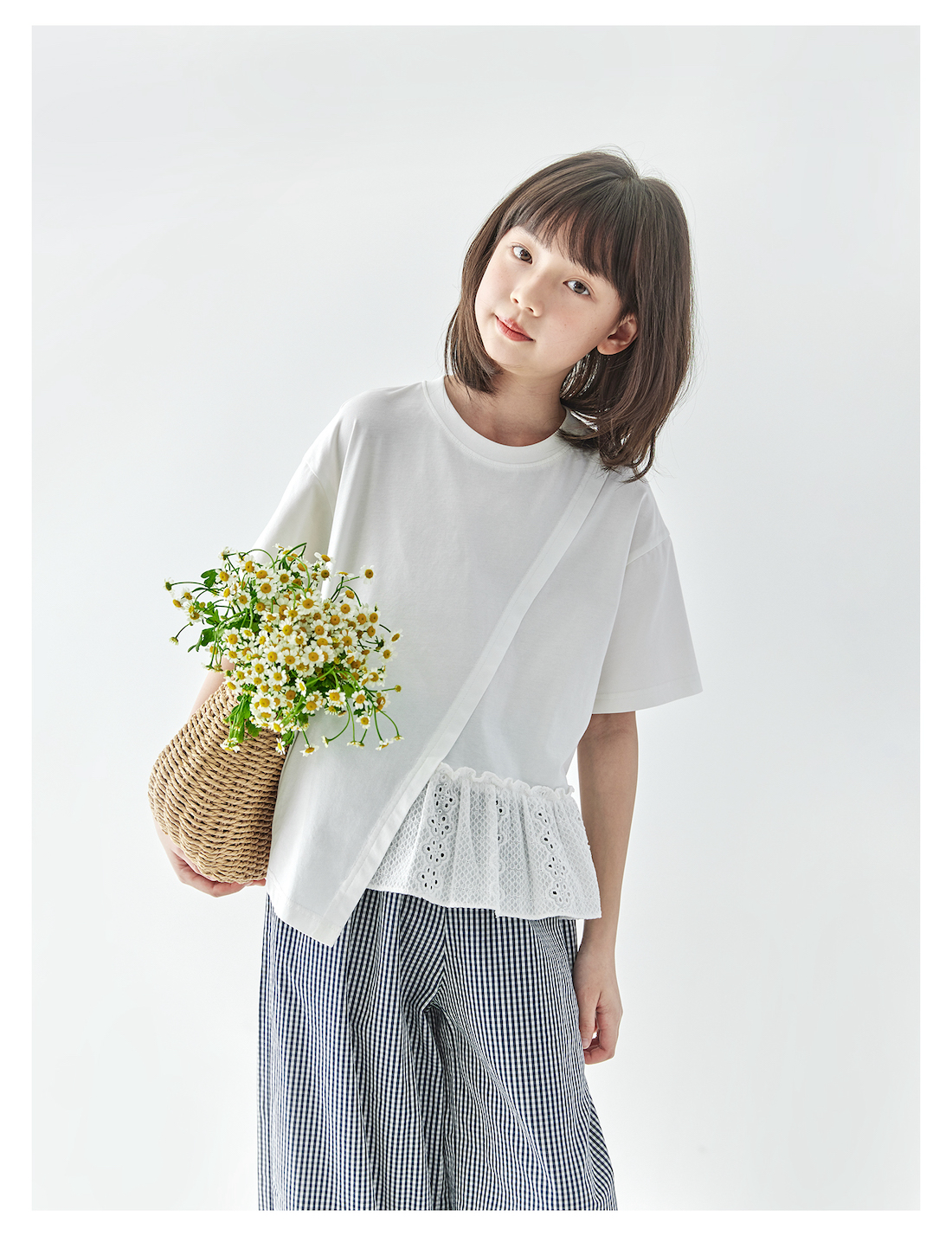 预售3.23发 棵初2025夏季新款亲子中大女童荷叶边不规则分割纯棉T恤