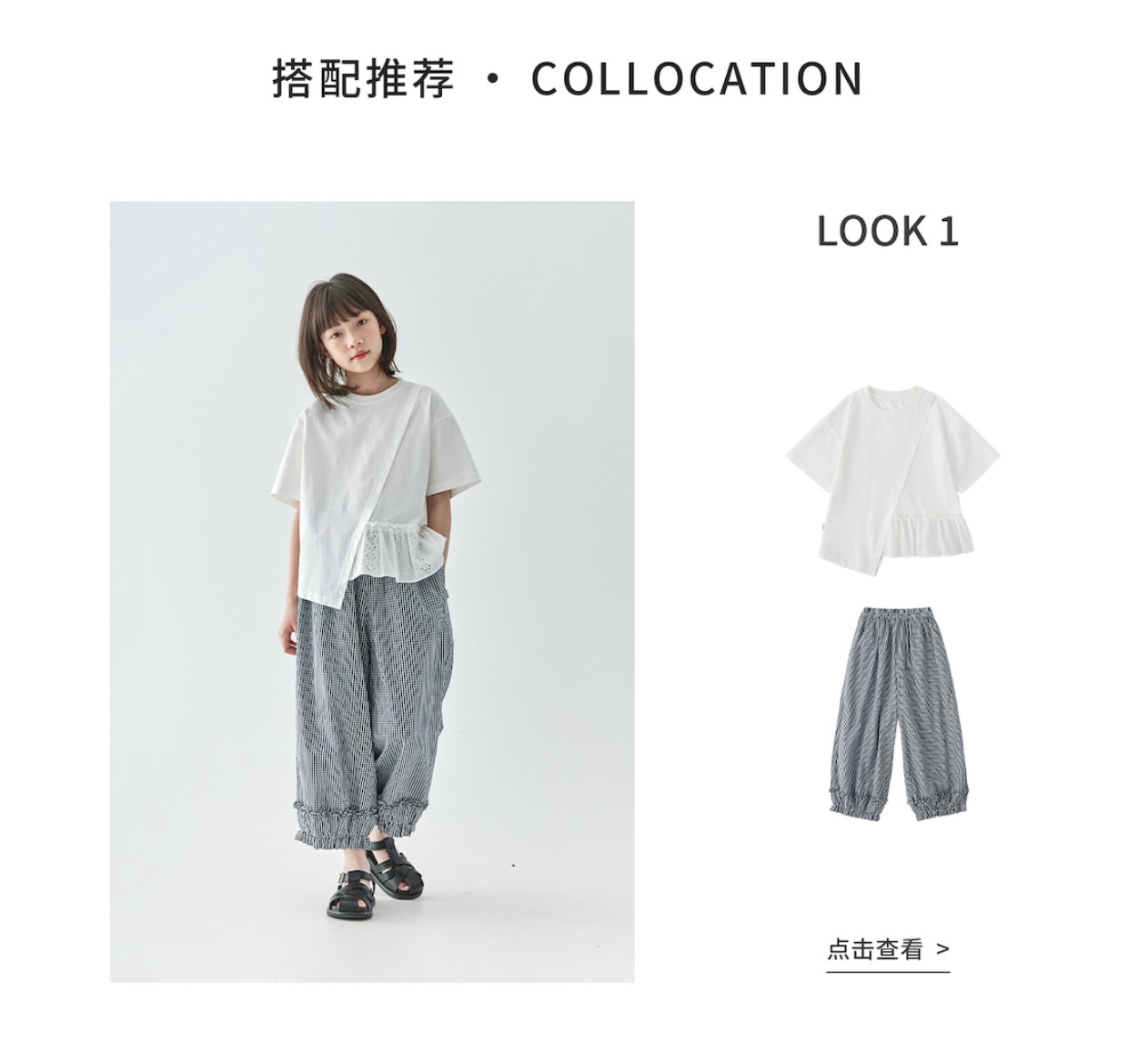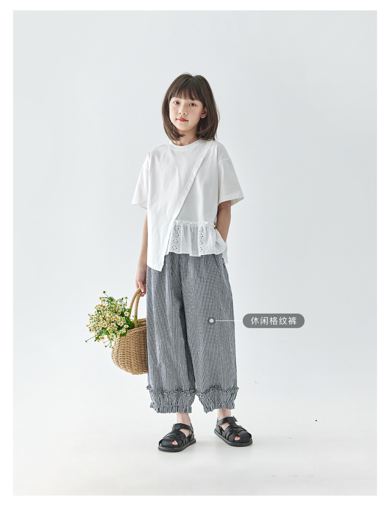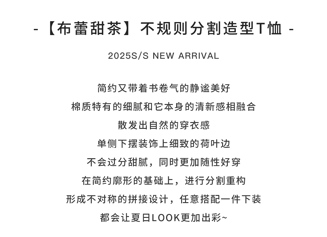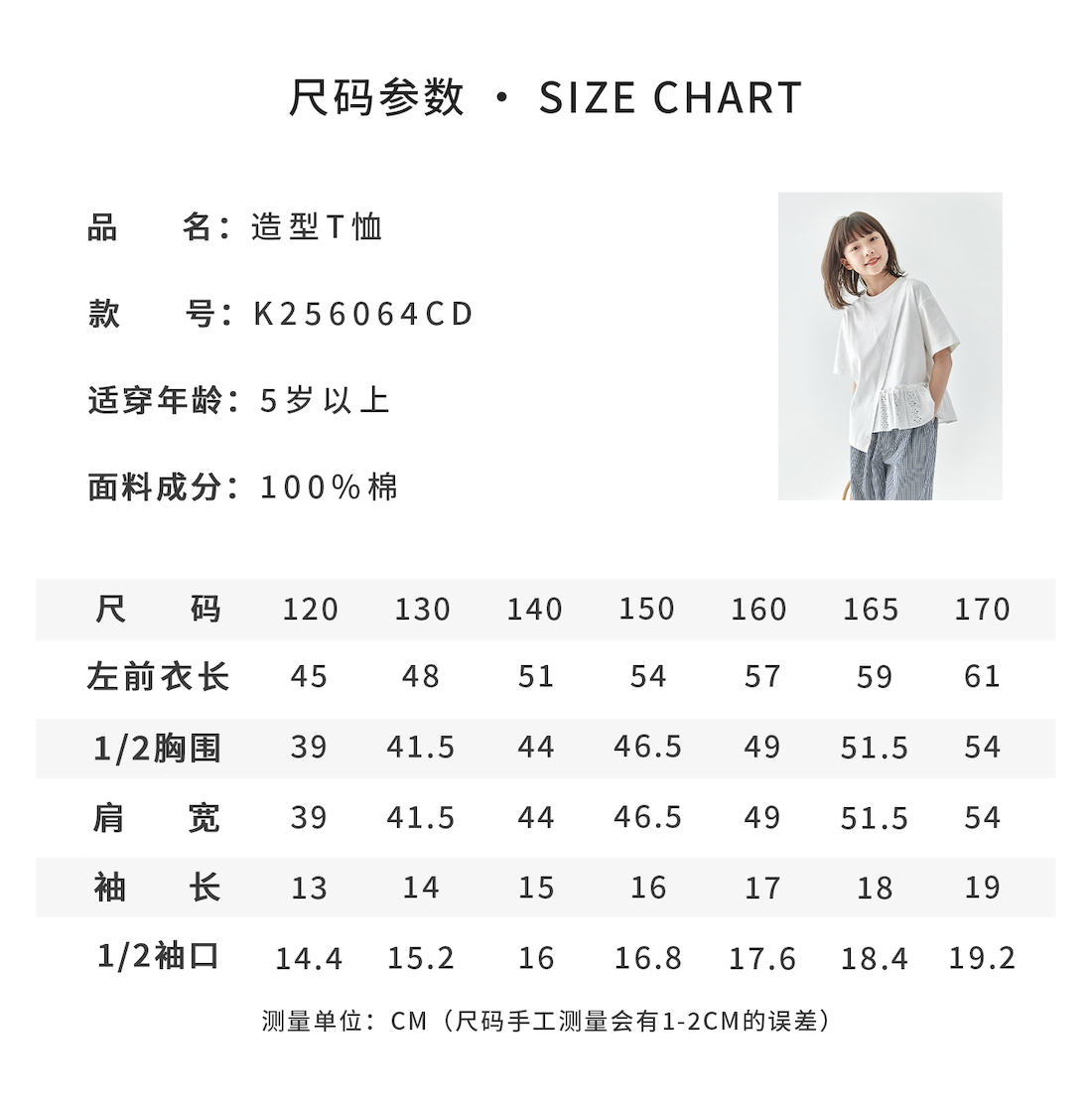 预售3.23发 棵初2025夏季新款亲子中大女童荷叶边不规则分割纯棉T恤