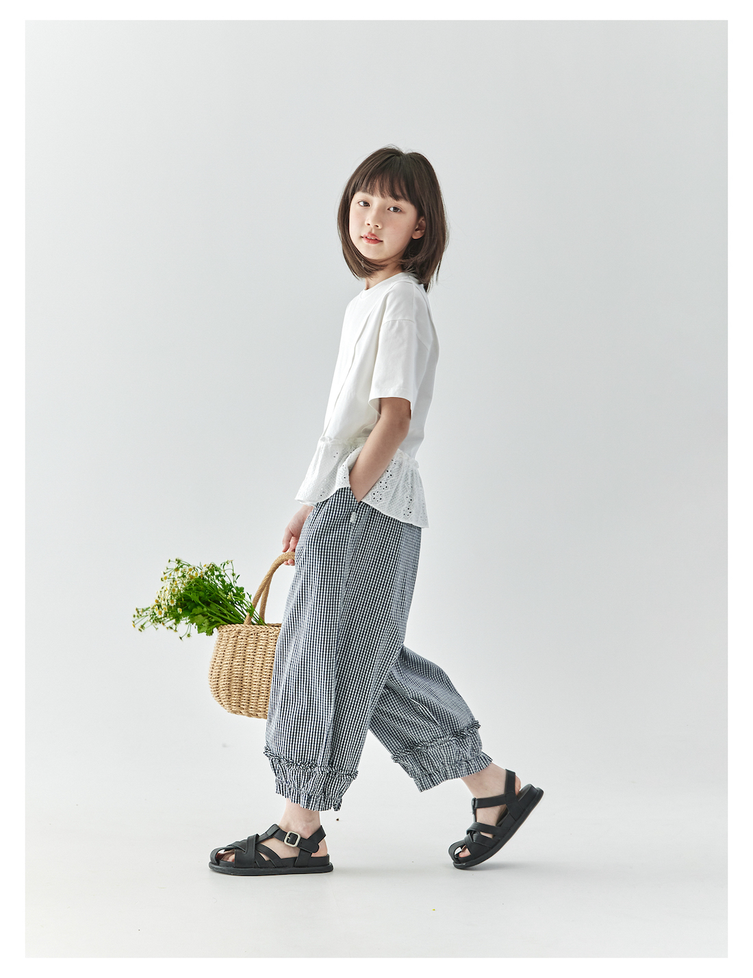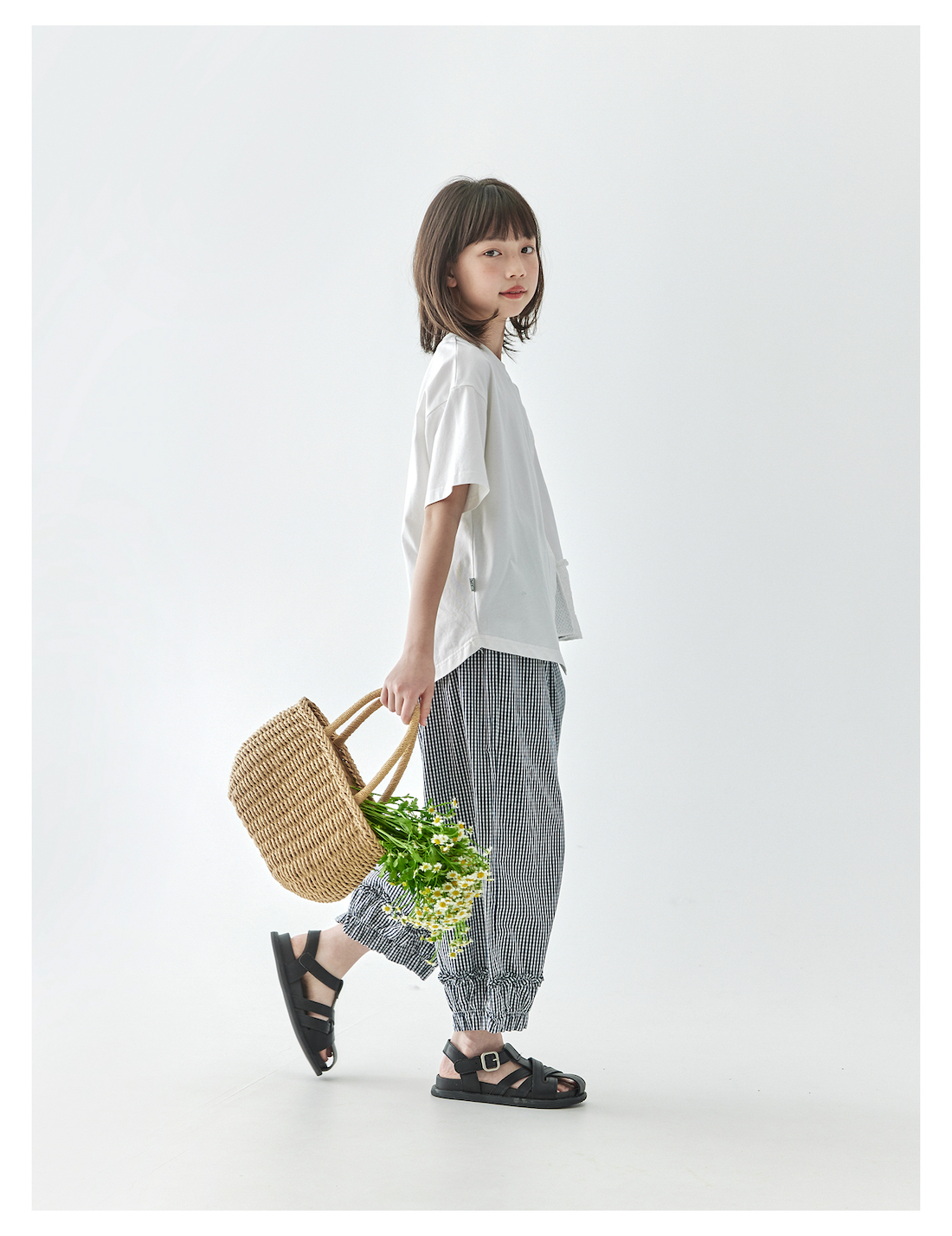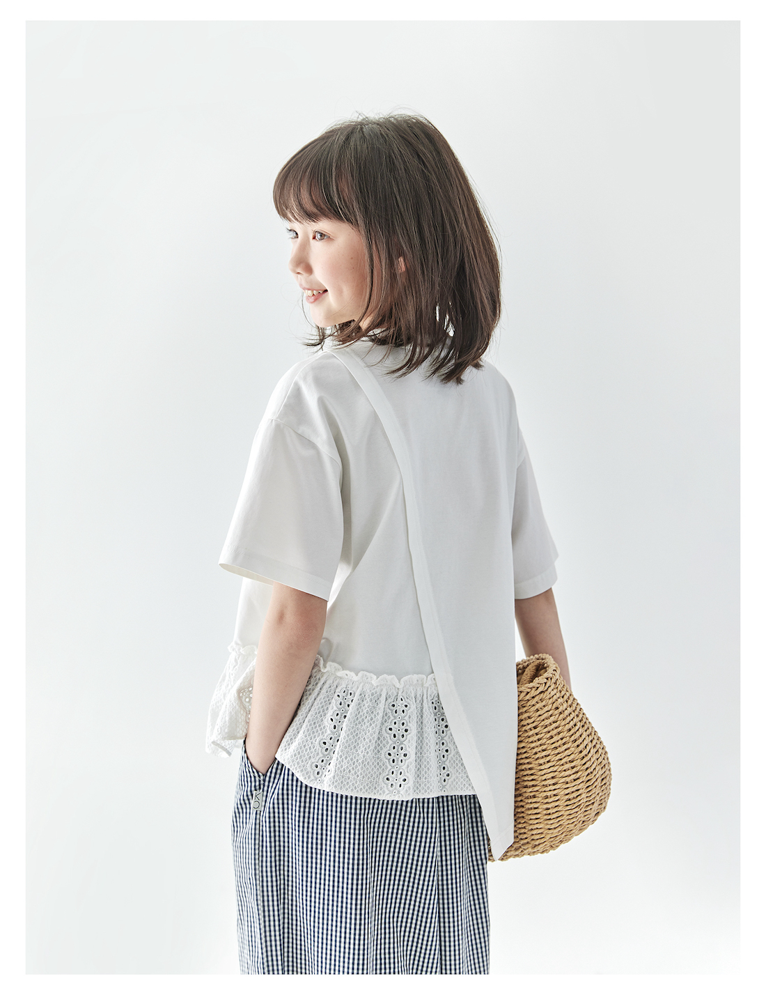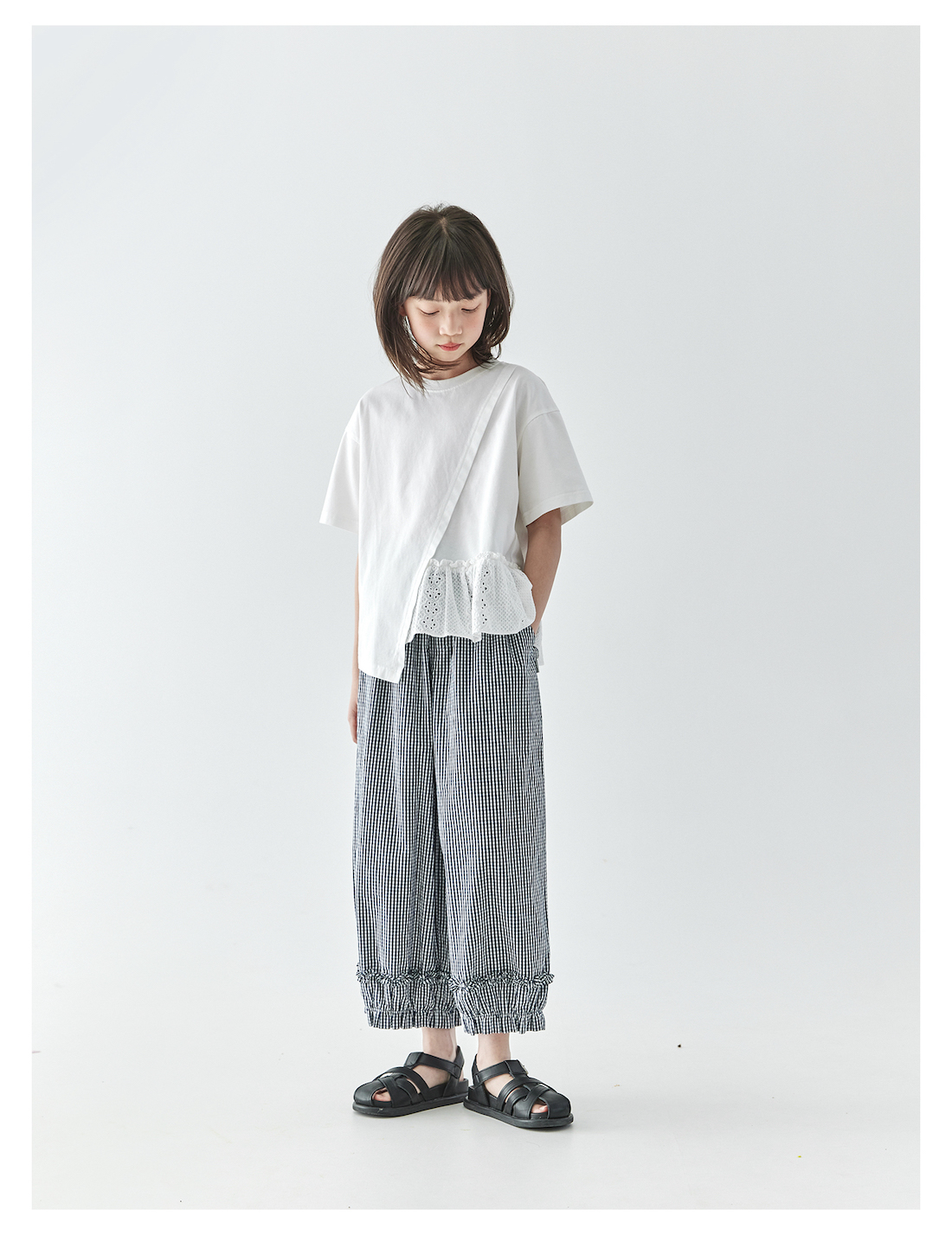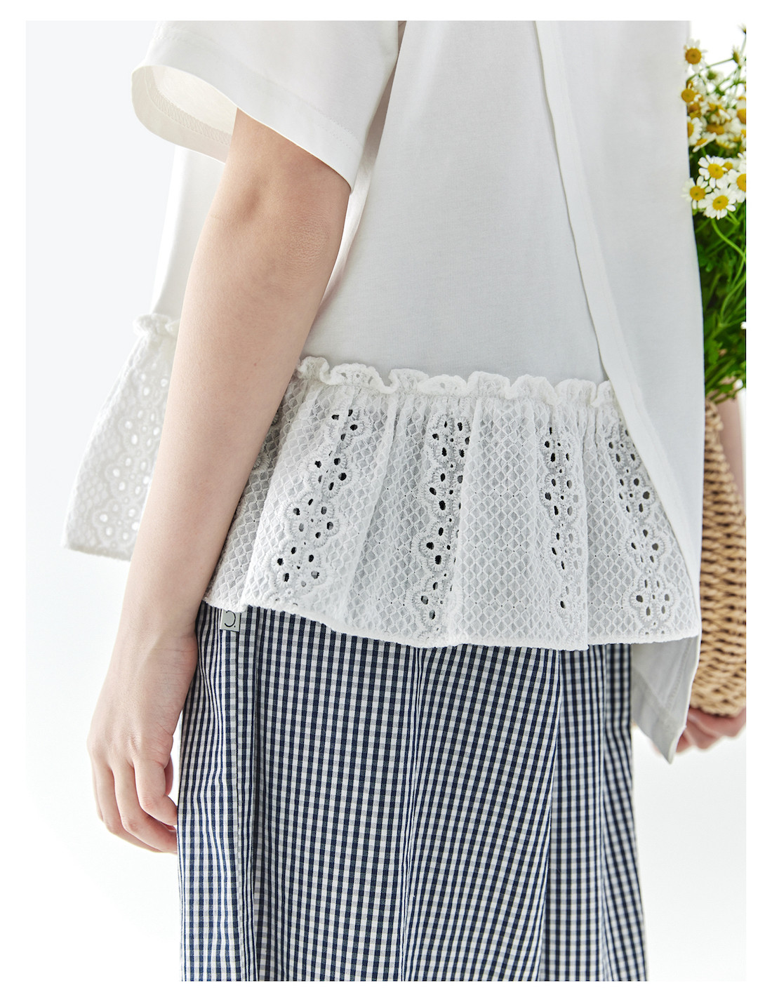预售3.23发 棵初2025夏季新款亲子中大女童荷叶边不规则分割纯棉T恤