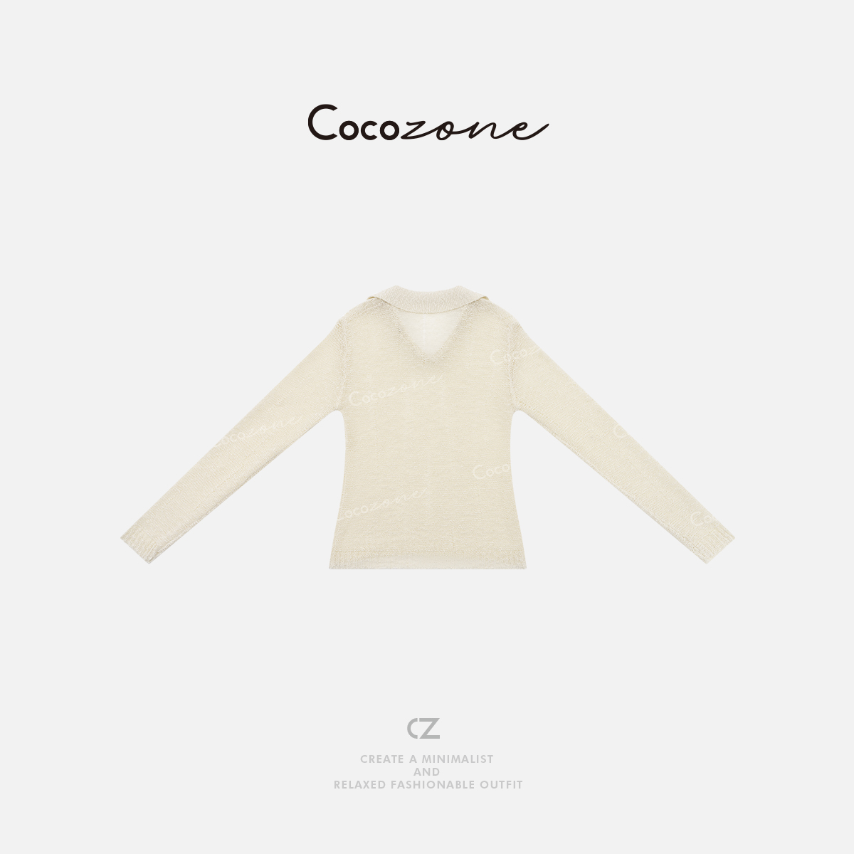 COCO ZONE 刘一一 通勤POLO领串珠镂空休闲针织衫 CD2A0970