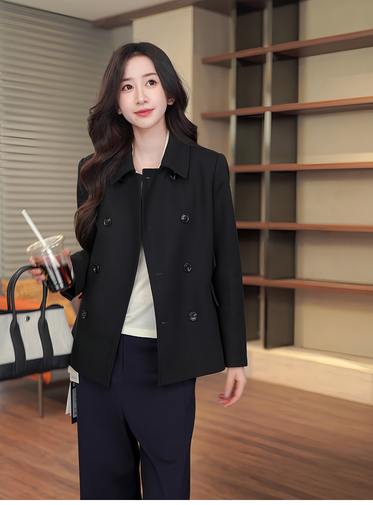 COCO ZONE 刘一一迪家女士2025秋装新款绵羊毛混纺随性风高端外套CD2A1535