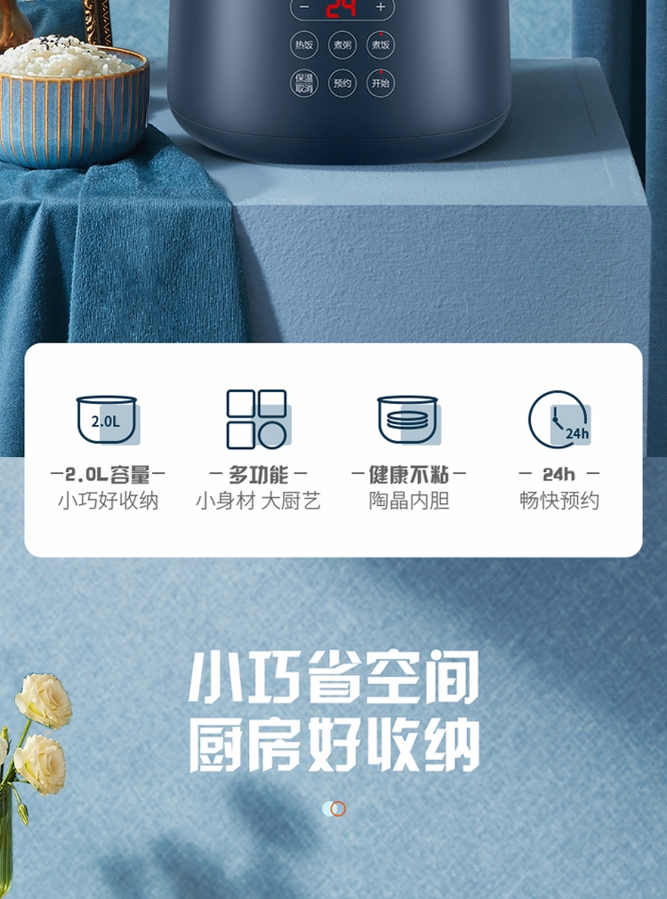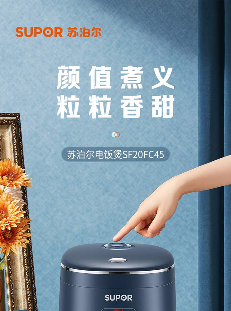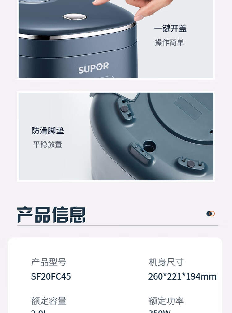 苏泊尔(SUPOR)ZMD安心系列 350W小功率 精控火候系统 24小时预约定时 可拆卸内盖 2L小容量电饭煲SF20FC45