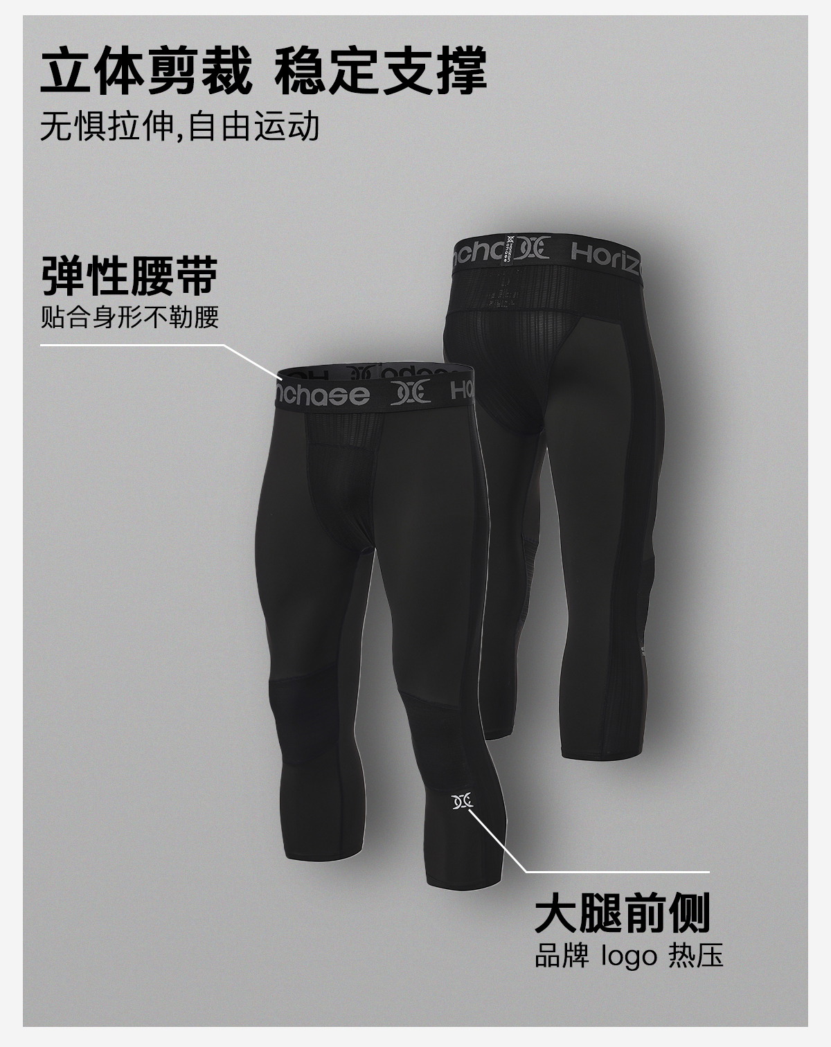录士LUSHISI不熄主题打底裤HC系列专业实战运动七分裤篮球打底裤