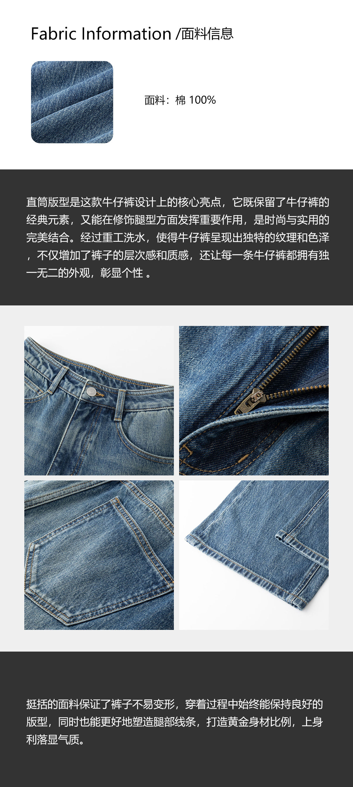COCO ZONE 刘一一“水洗蓝”100棉经典直筒街头风牛仔裤 CD2A1462