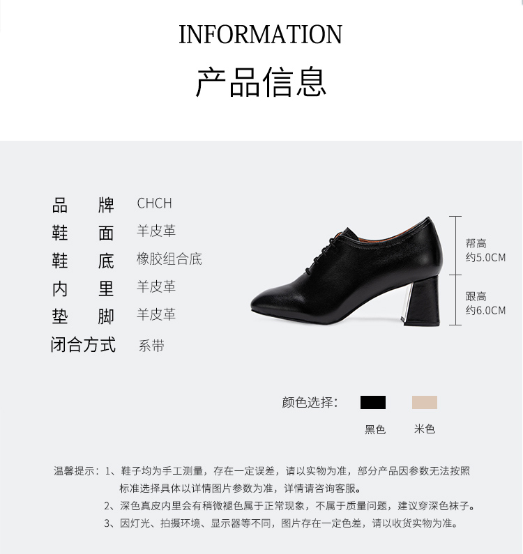 CHCH平衡鞋粗跟单鞋2024秋冬新品小皮鞋上班通勤深口羊皮单鞋CO2B5021