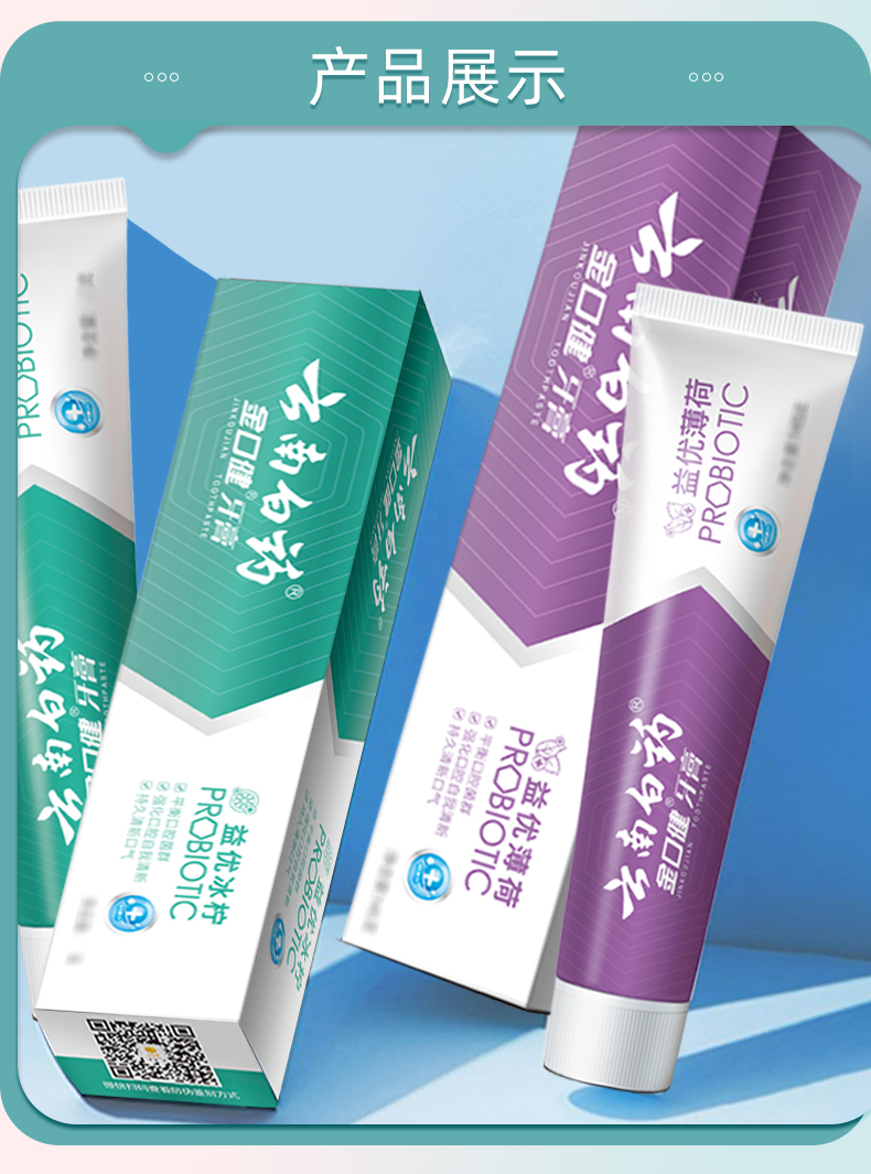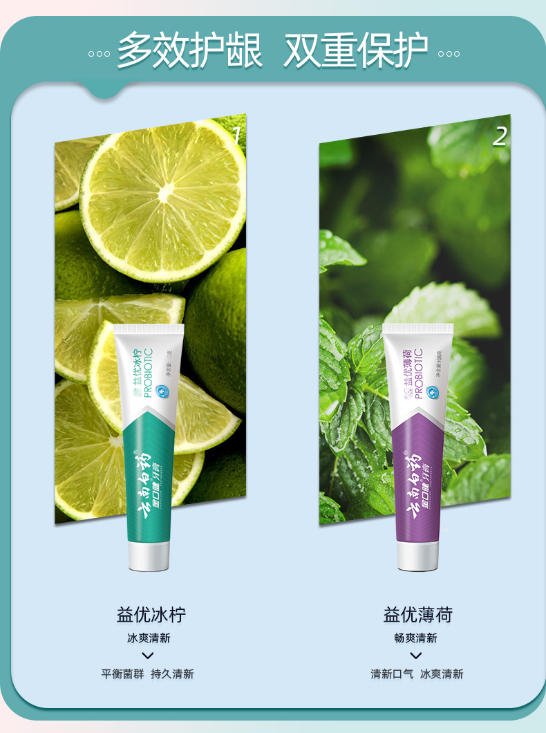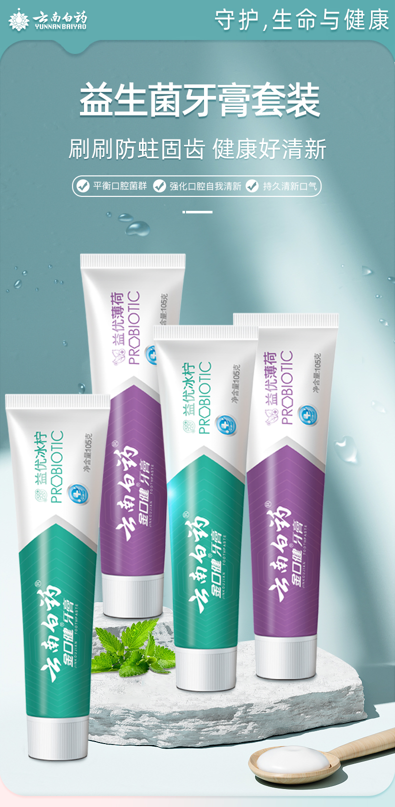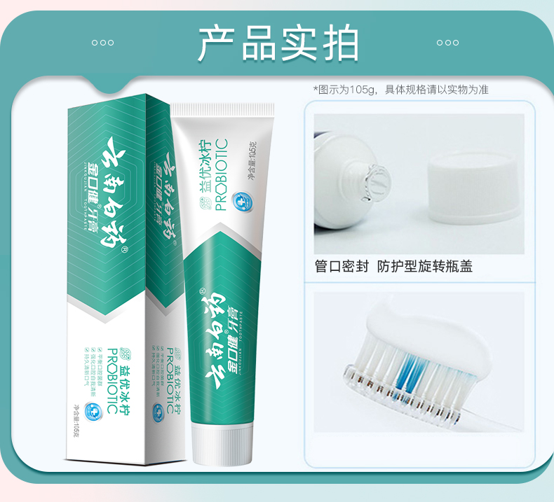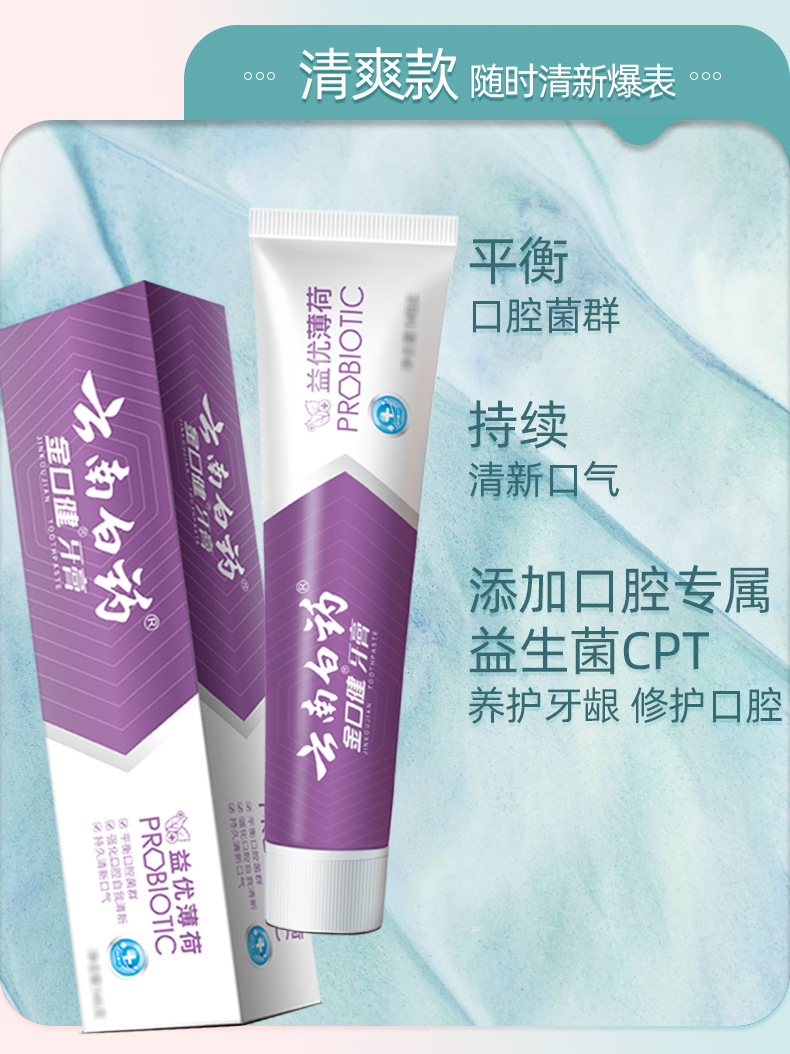 【白药精选】云南白药金口健益生菌牙膏420g组合冰柠薄荷味平衡口腔菌群清新口气