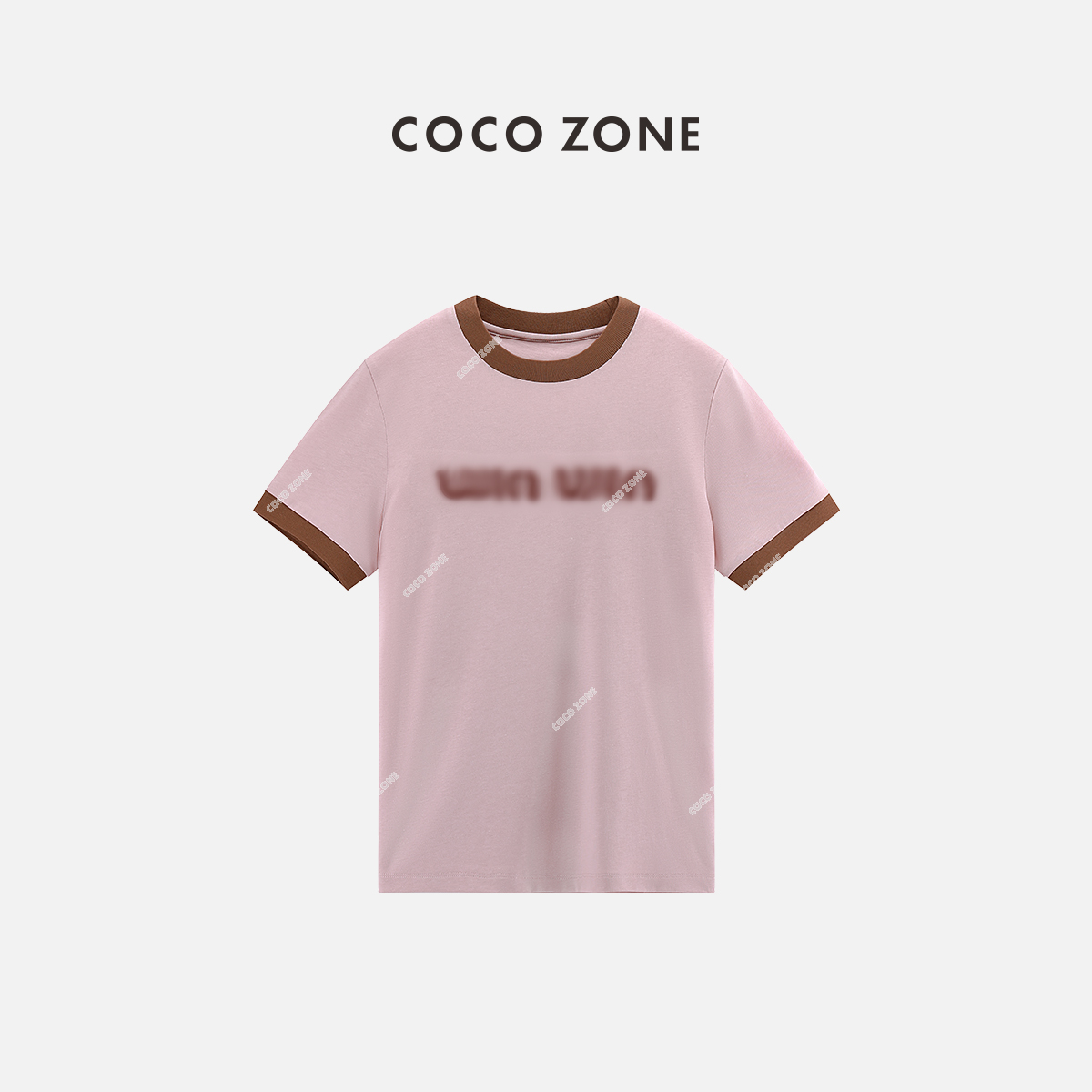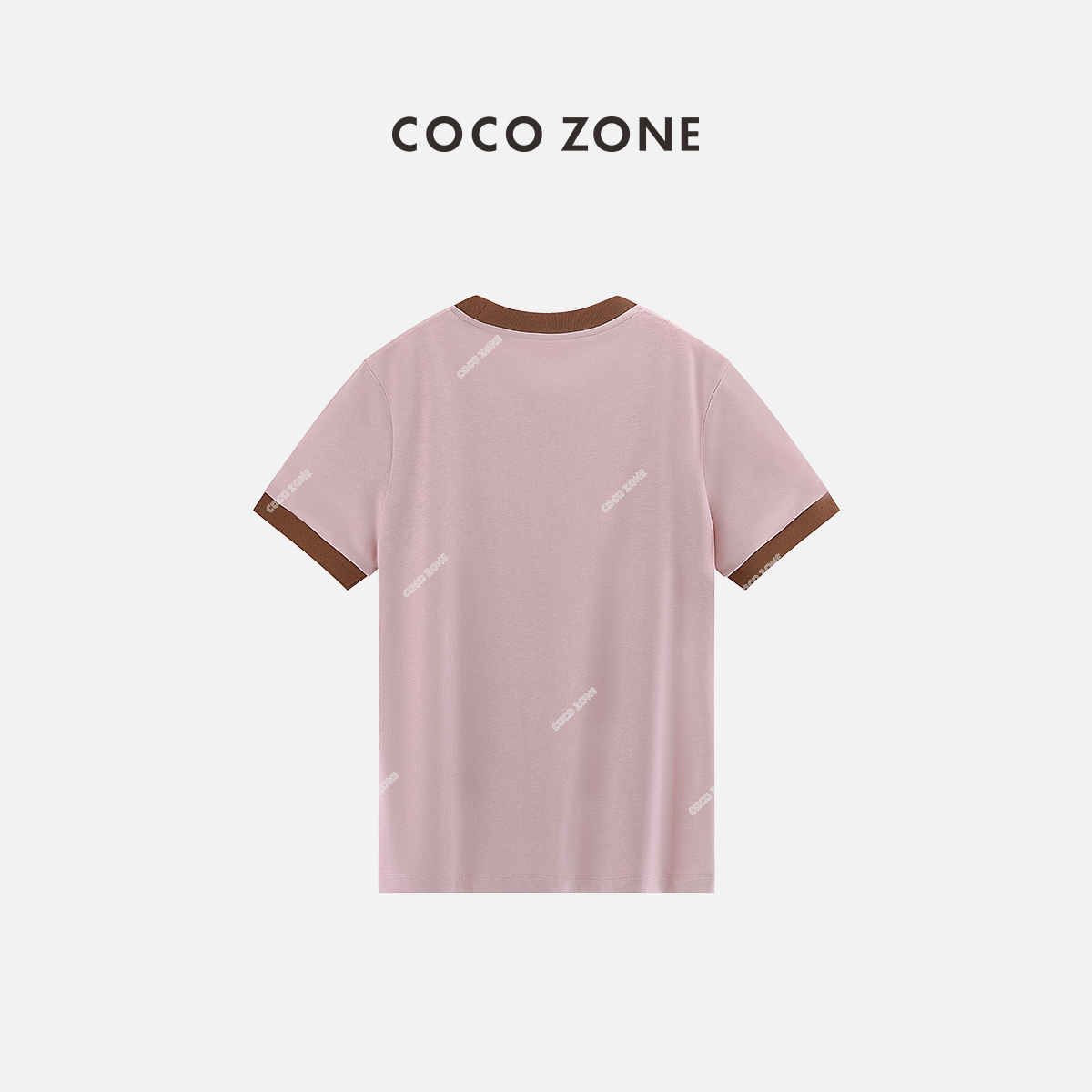 ZONE2024"粉柔T"早春时尚撞色字母设计感短袖T恤CC1A0613