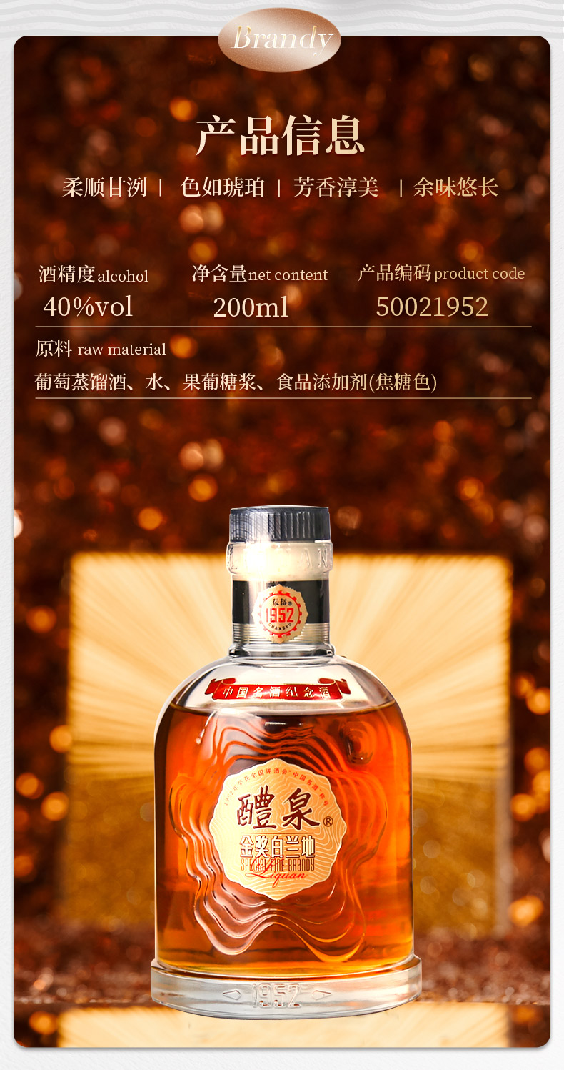 张裕醴泉1952白兰地200ml