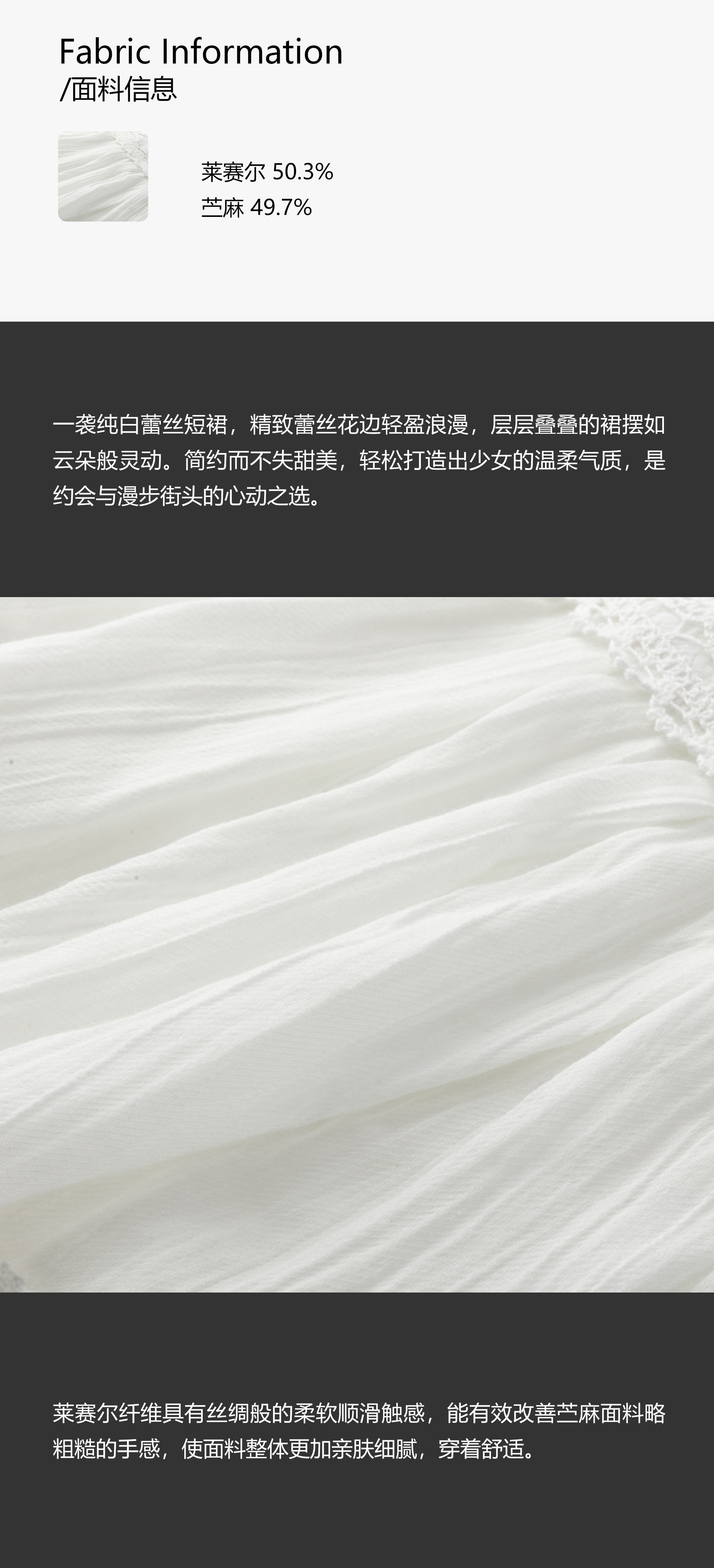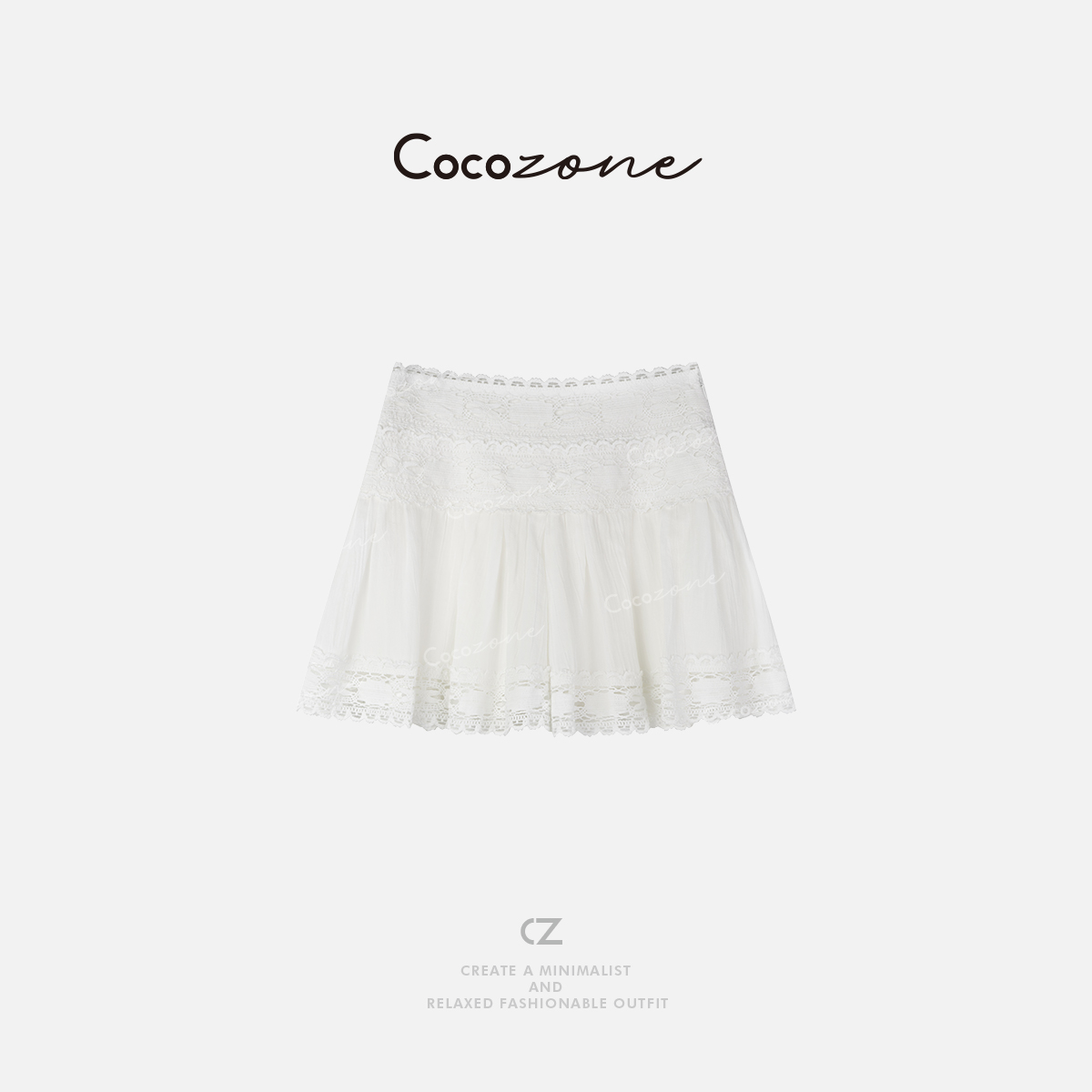 COCO ZONE 刘一一 【莱塞尔苎麻混纺】拼接镂空A字短裙CD1A0324