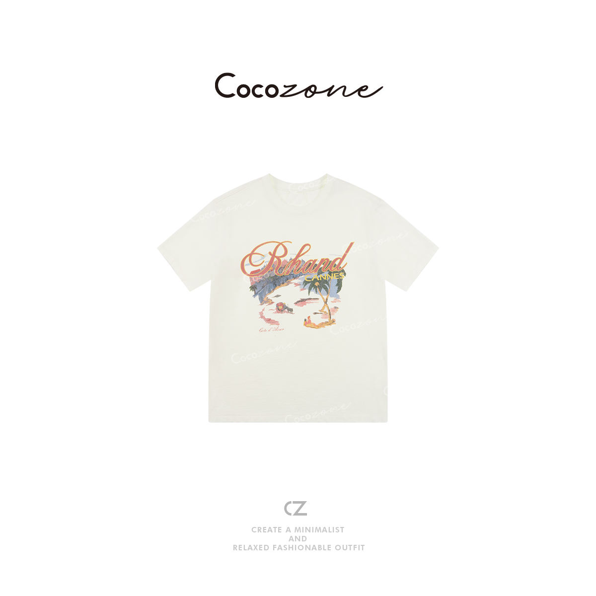 COCO ZONE 刘一一2025新款宽松百搭美式图案短袖T恤CD1A0587