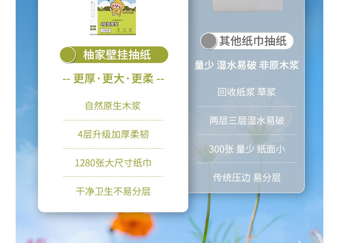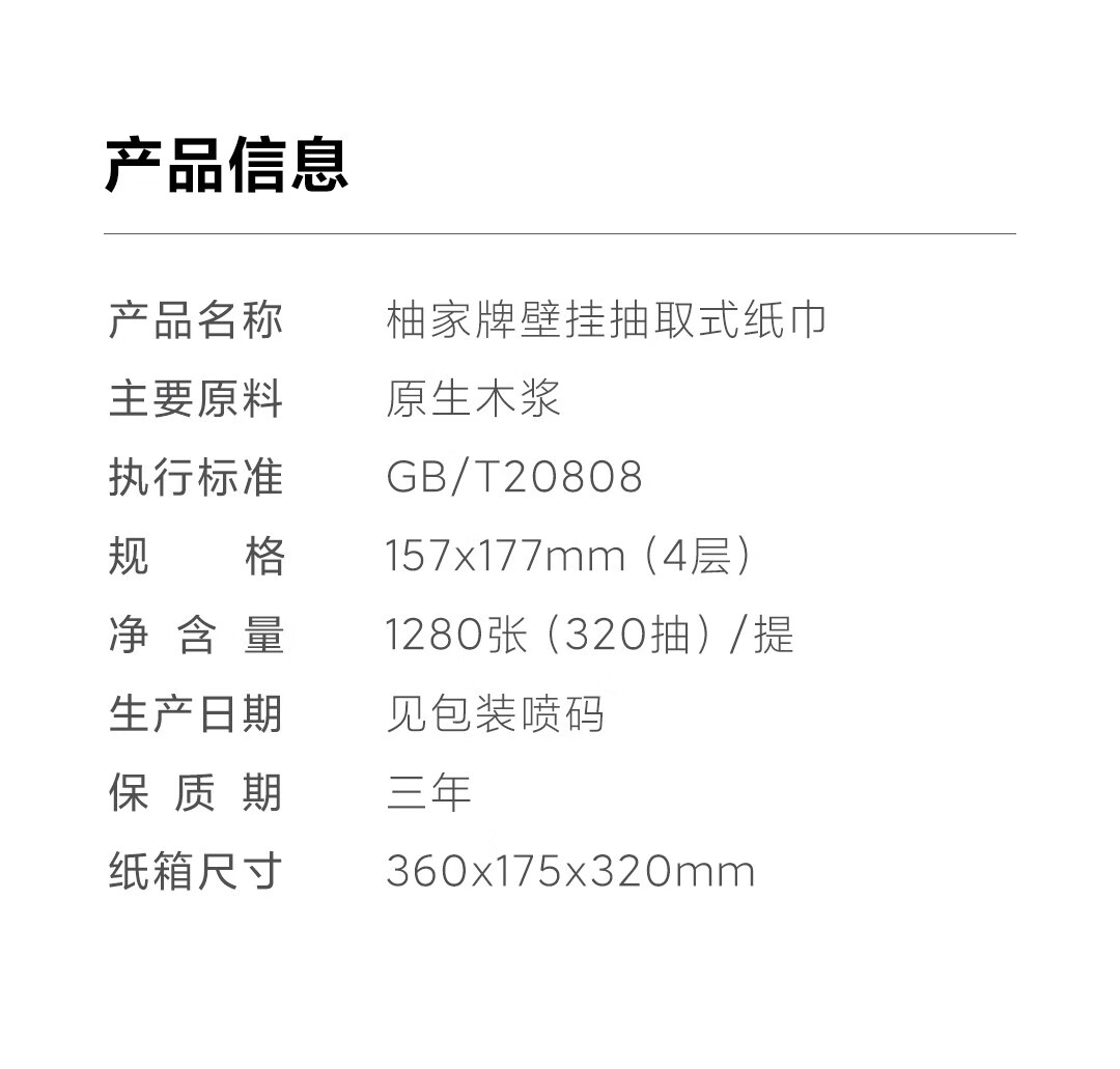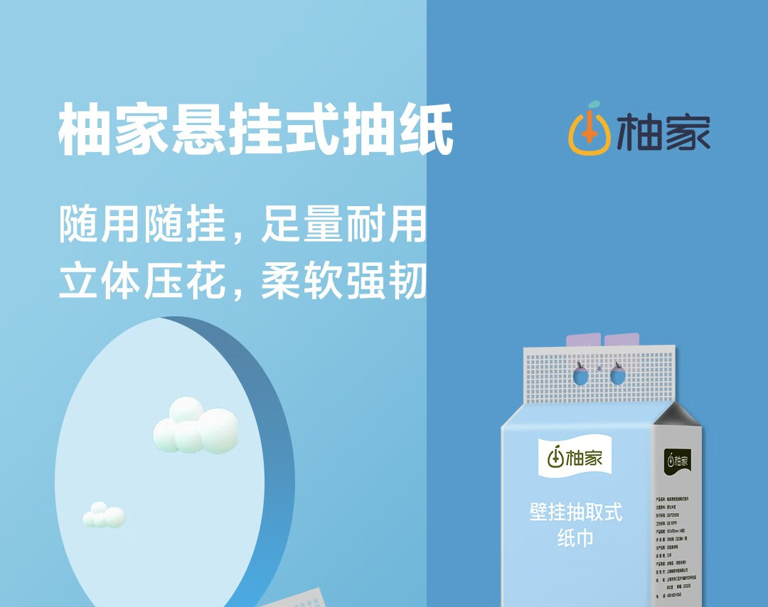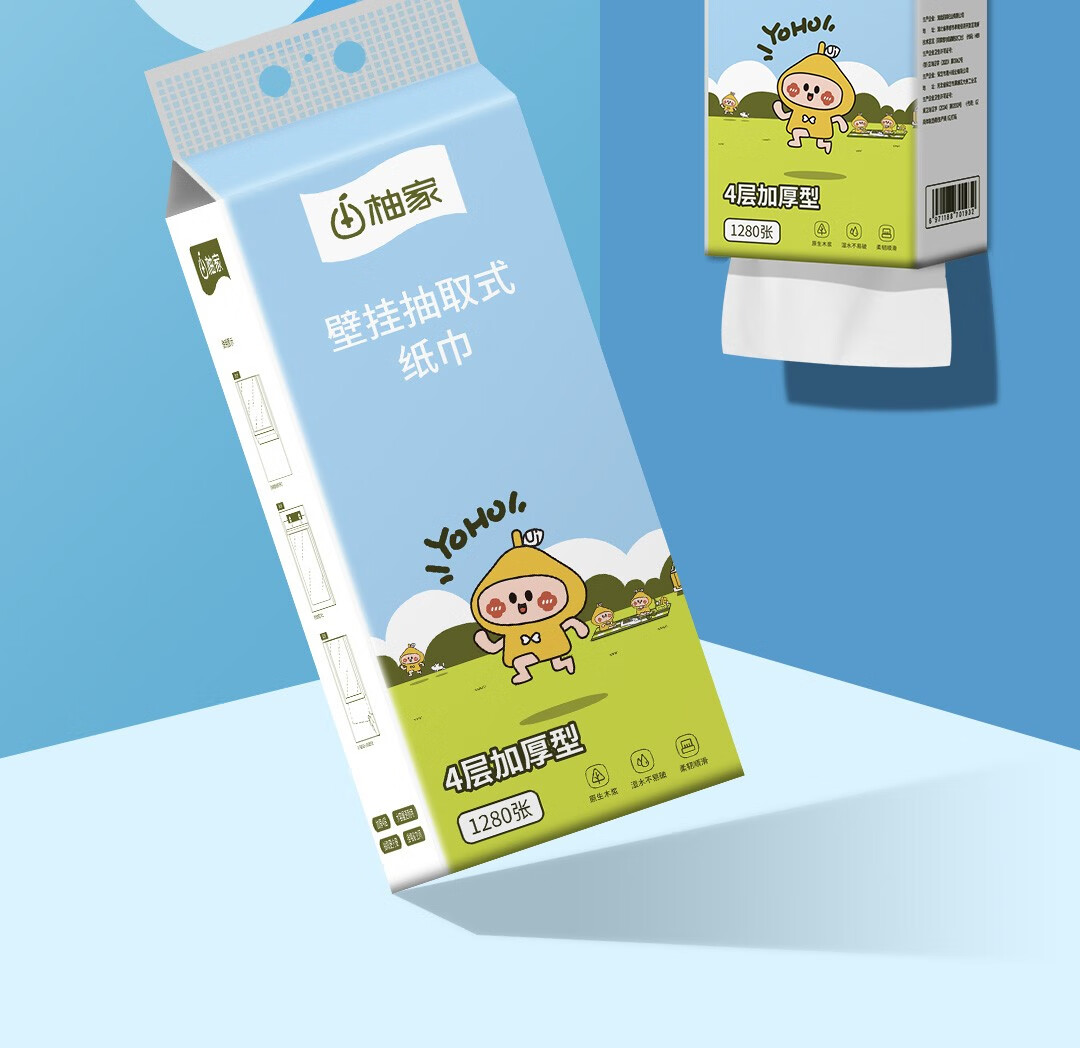 柚家牌壁挂抽取式纸巾 4提/箱