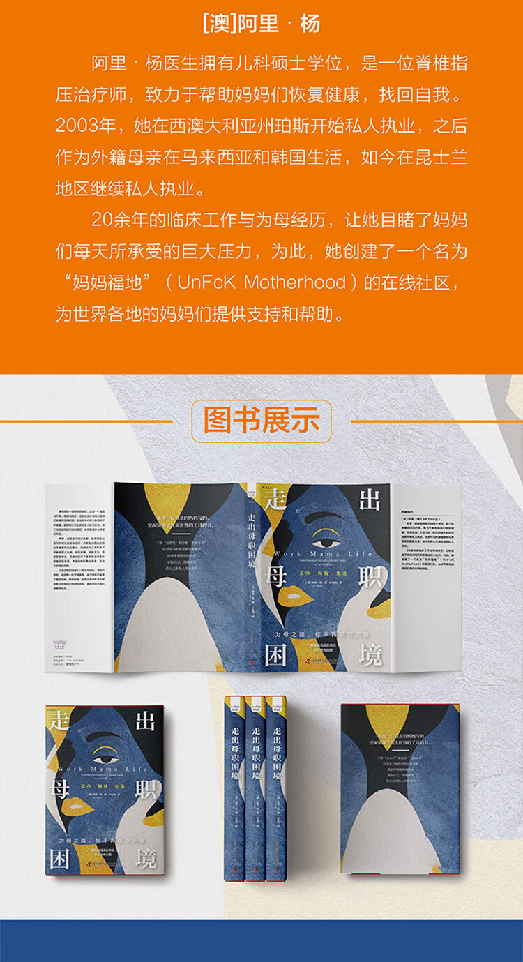 阿里·杨结合了循证医学、临床经验以及作为母亲的亲身经历,向那些试图达到更好平衡的妈妈们展示,如何应对工作和孕产带来的巨大挑战,恢复健康,战胜压力,重新发现快乐,为她们提供了重新塑造母亲形象的实用策略,并鼓励她们做出健康、活力和舒适的选择。