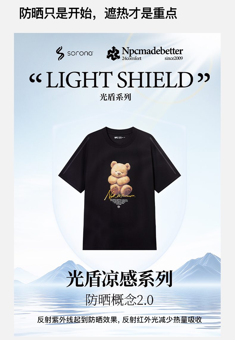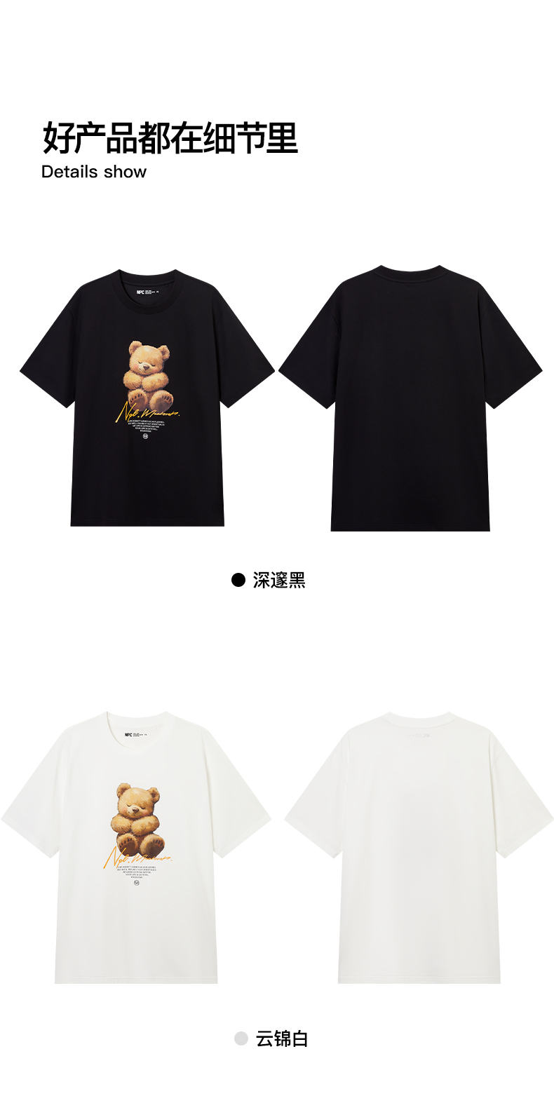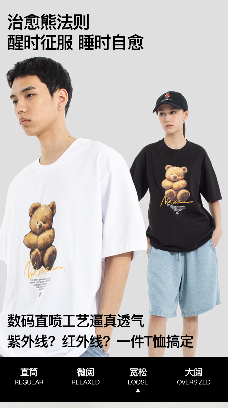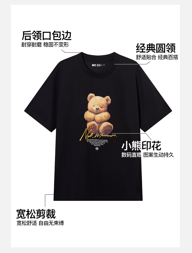 NPC潮牌【治愈小熊】数码印花短袖T恤凉感抑菌情侣春夏NP52TE19&20