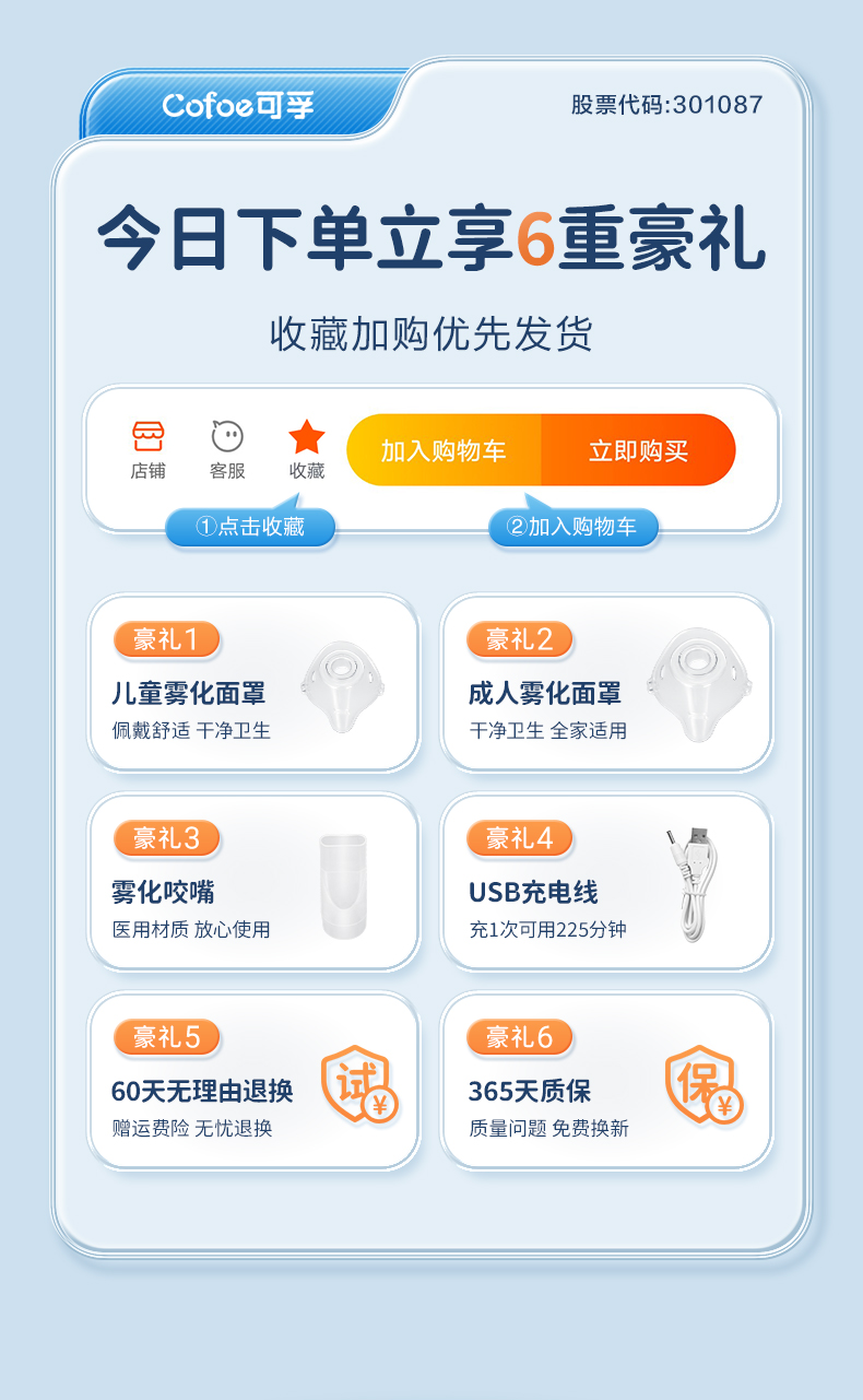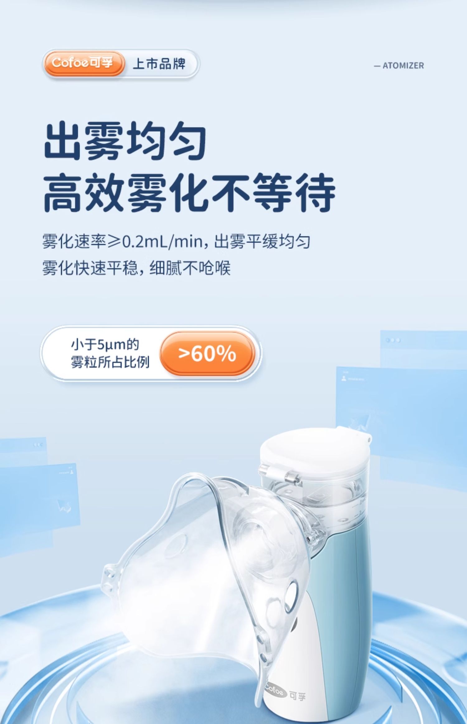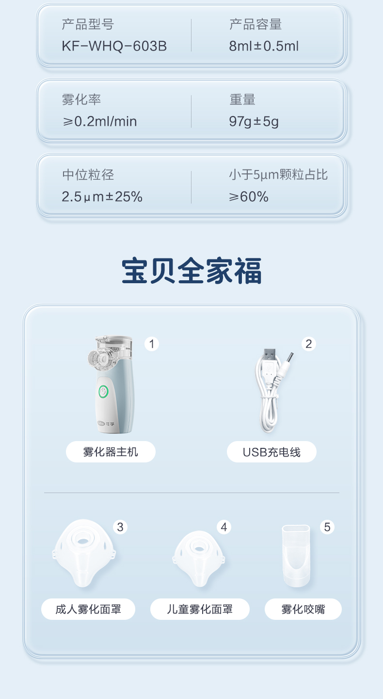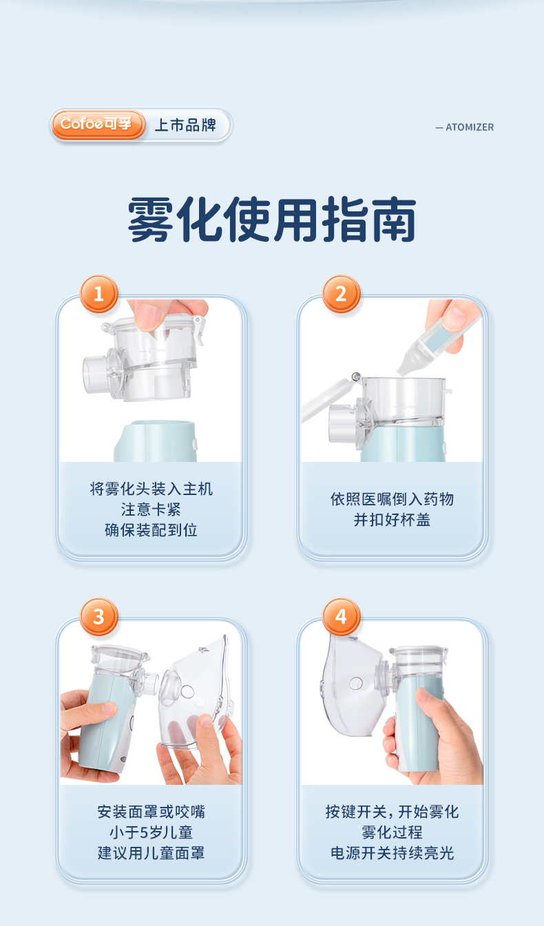 可孚医用雾化器儿童家用静音便携式婴儿医疗手持雾化机家庭用吸入