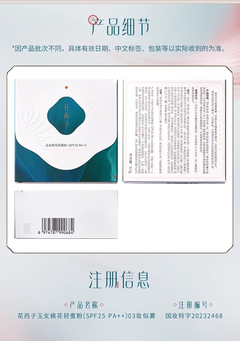 花西子玉女桃花轻蜜粉香粉盒版 8.5g(注:美妆为特殊商品,下单后不支持退货)