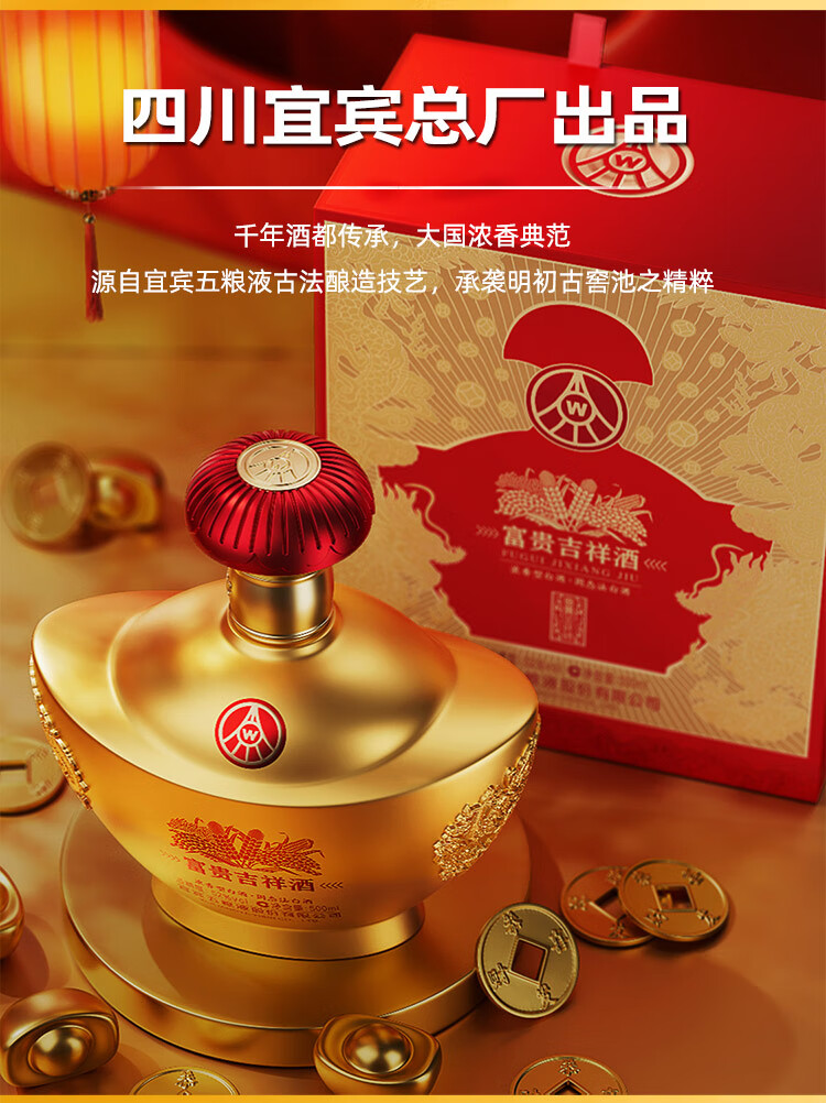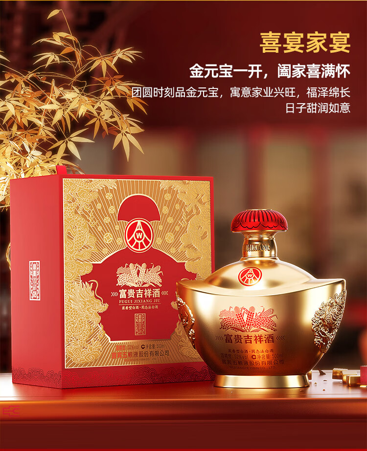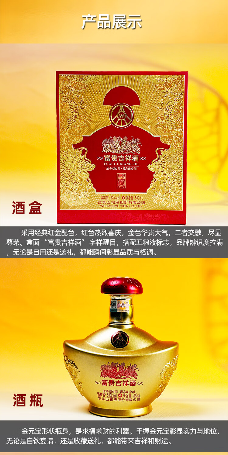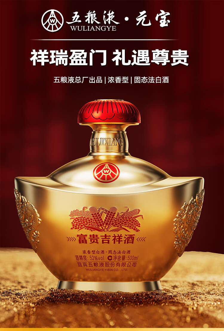 五粮液 52度 富贵吉祥 金元宝 浓香型白酒 (单瓶装)