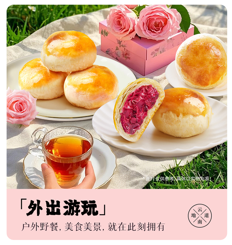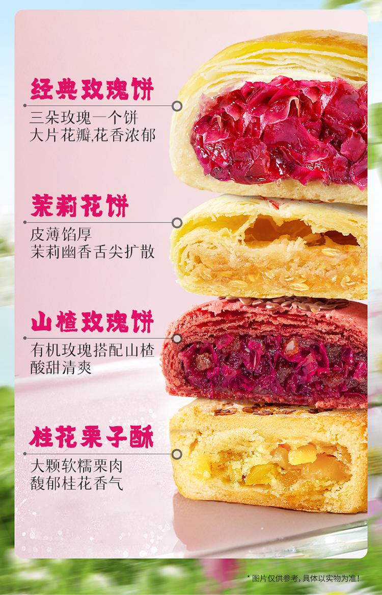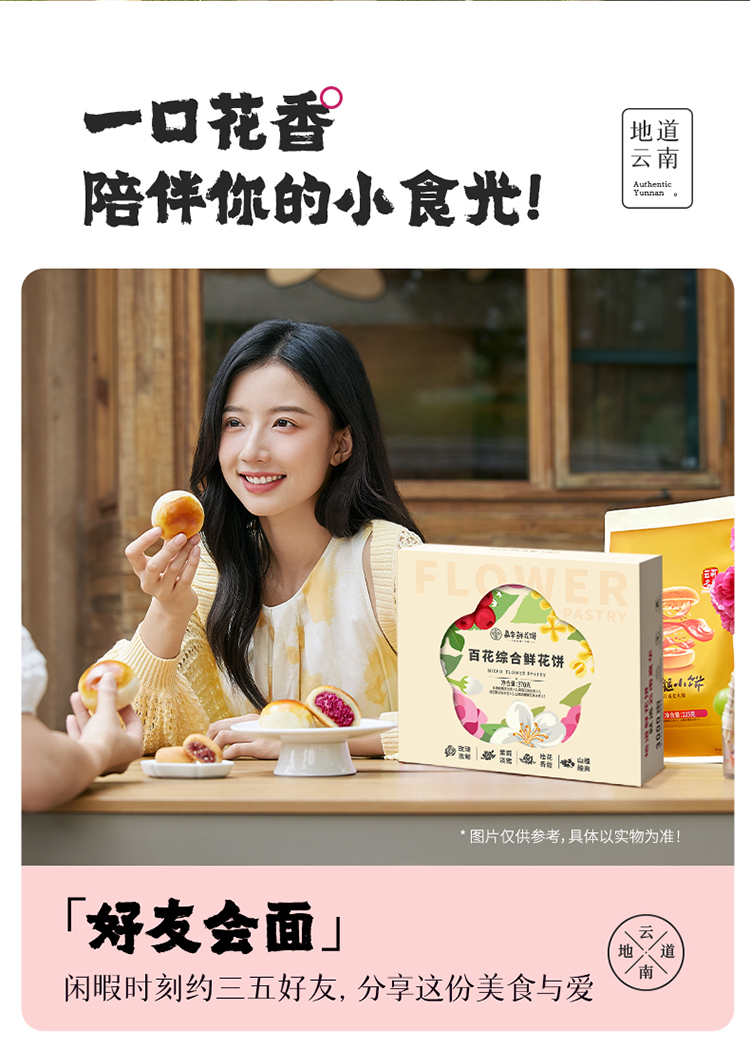 嘉华鲜花饼 百花综合鲜花饼-8枚盒装 370g/盒 云南特产 下午茶 零食 嘉华