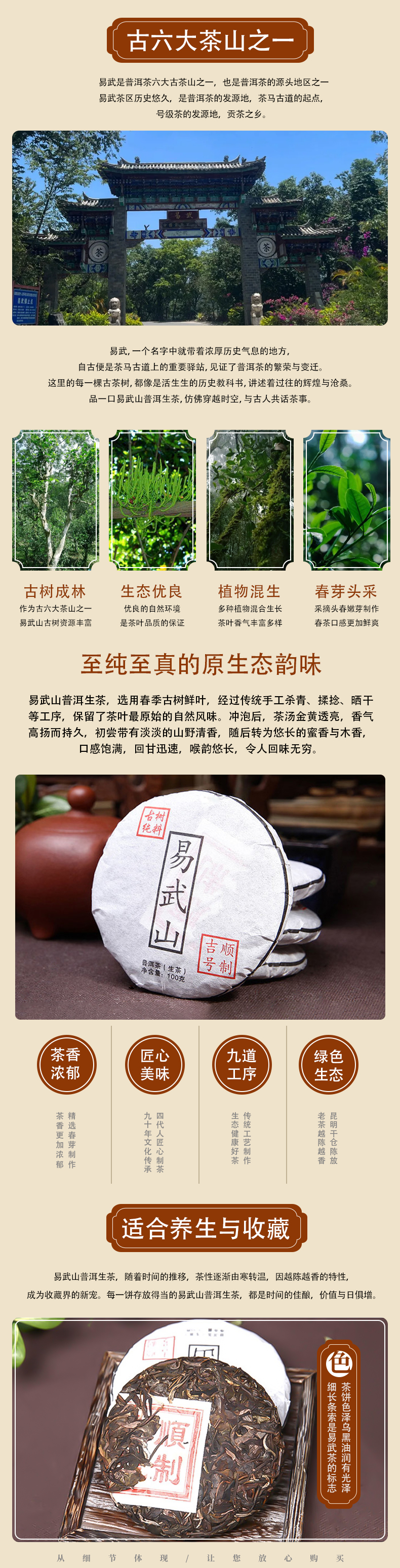 吉顺号普洱茶 2019年易武山生饼普洱生茶叶100g/饼