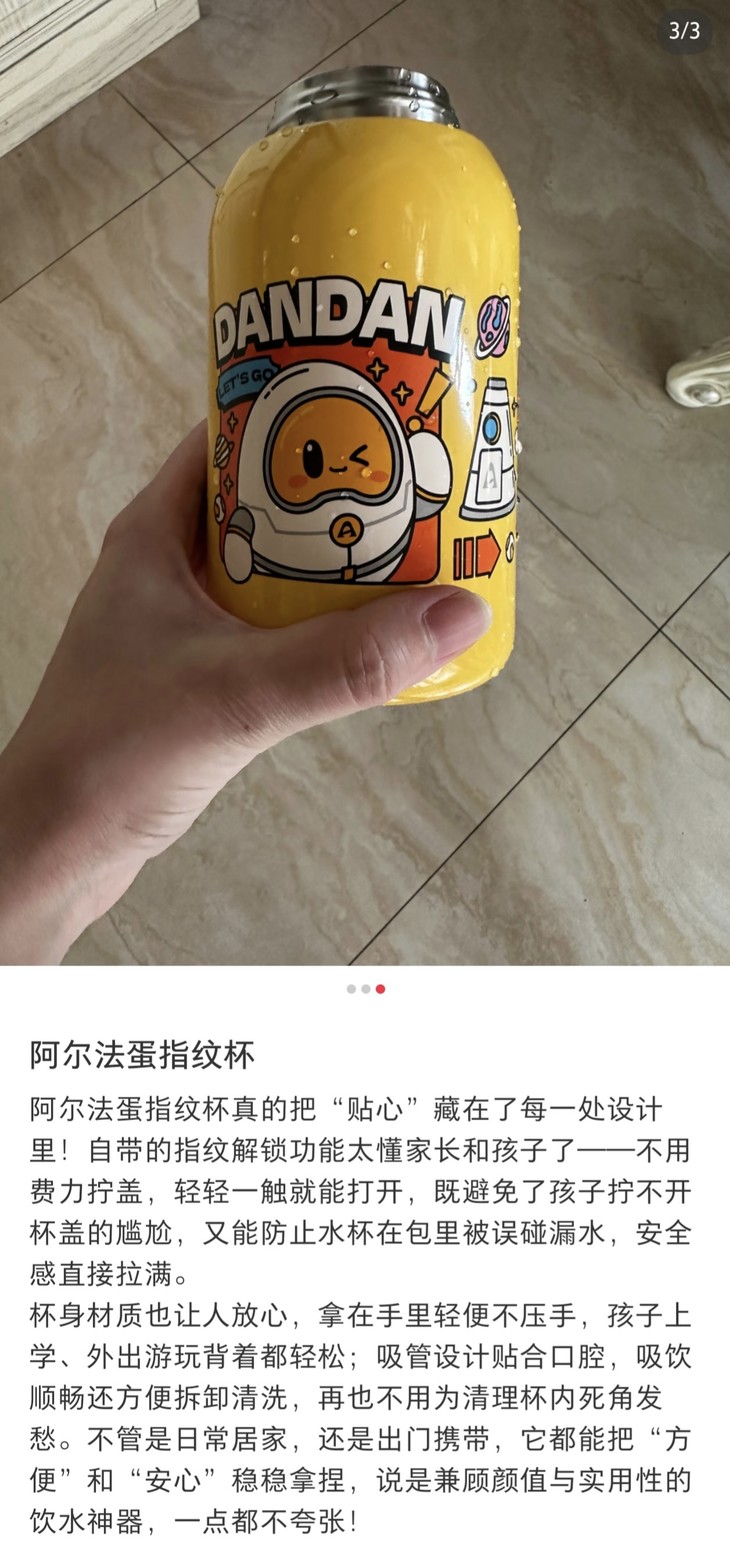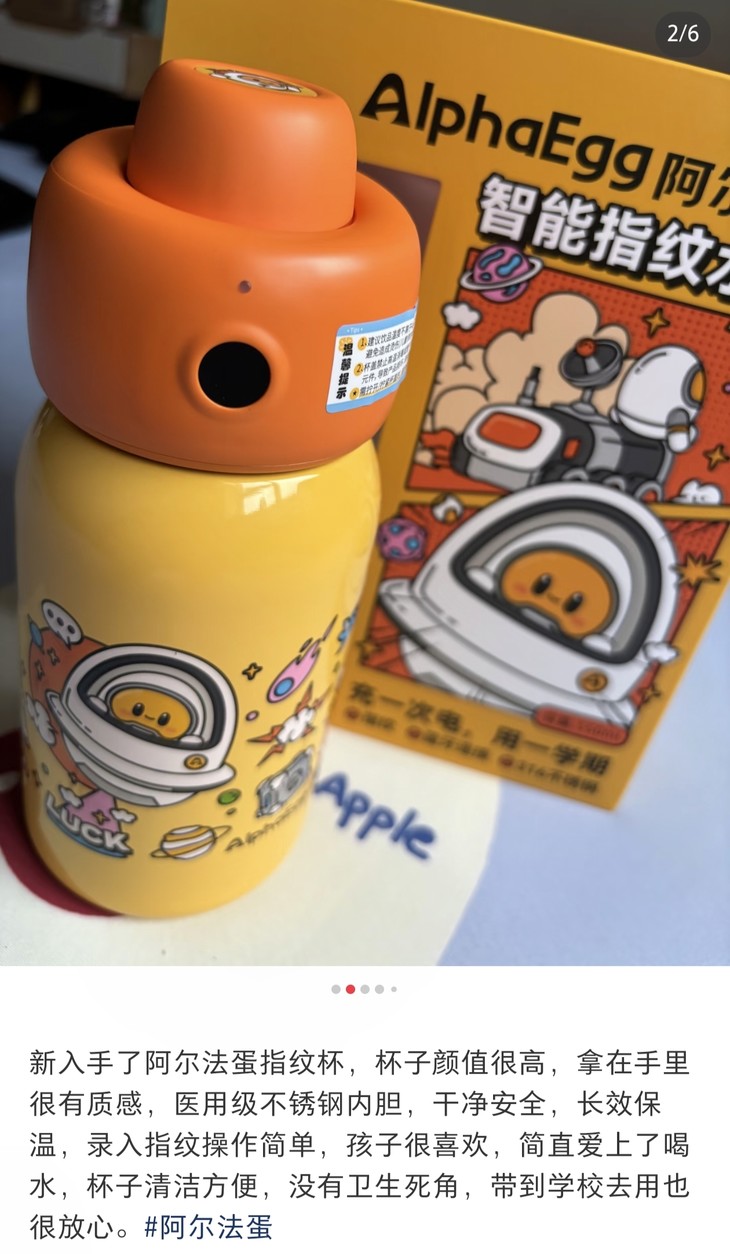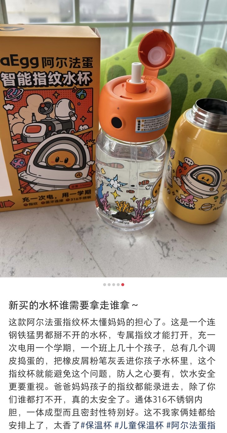 [屁侠推荐]阿尔法蛋AI指纹水杯 智能指纹识别技术 一锁双盖 550ml/650ml双杯套装